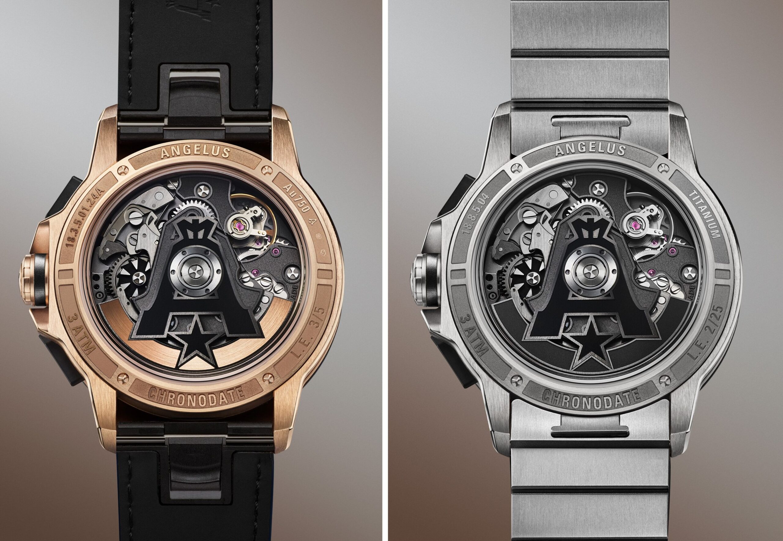 Hoạt động ở tần số 4 Hz, bộ máy tích hợp bánh răng cột cùng cơ chế ly hợp ngang nhằm giảm độ dày, cung cấp 60 giờ dự trữ năng lượng. Trở thành tâm điểm mặt sau trưng bày bên dưới lớp kính sapphire trong suốt, hệ thống lên dây tự động vận hành thông qua rotor mang thiết kế lưu trữ của Angelus, với chữ “A” phía trên một ngôi sao, gợi hình ảnh chiếc chuông và quả lắc, nhắc nhớ đến buổi đầu khởi lập thương hiệu.
