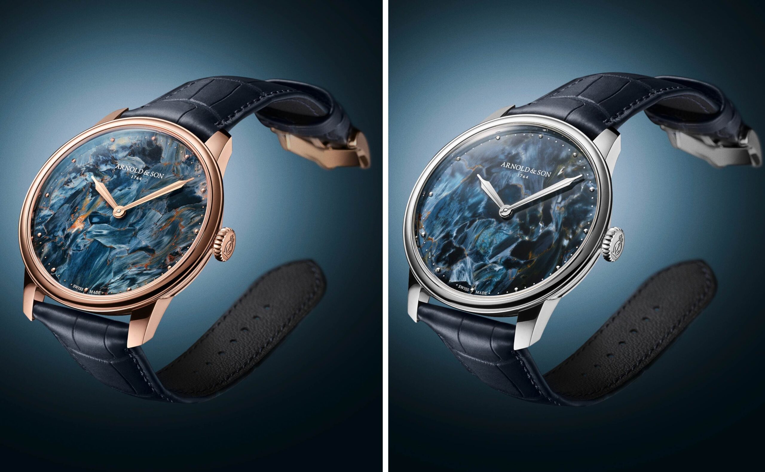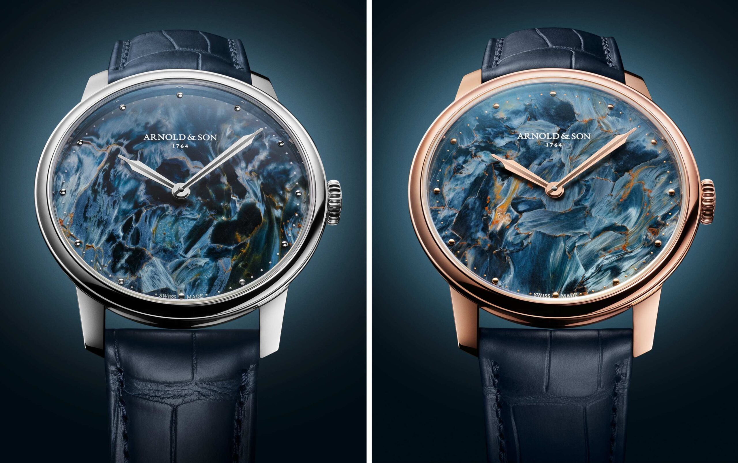 òn nổi tiếng với cái tên “stone of storms”, Pietersite là một dạng chalcedony. Do Sid Pieters phát hiện tại Namibia vào đầu thập niên 1960, loại đá này được Arnold & Son lựa chọn nhờ những đường vân xoáy ngẫu hứng, tinh tế, gợi nhớ bầu trời Cornwall trong những ngày giông bão cùng làn sóng bạc đầu vỗ vào bờ đá gồ ghề.