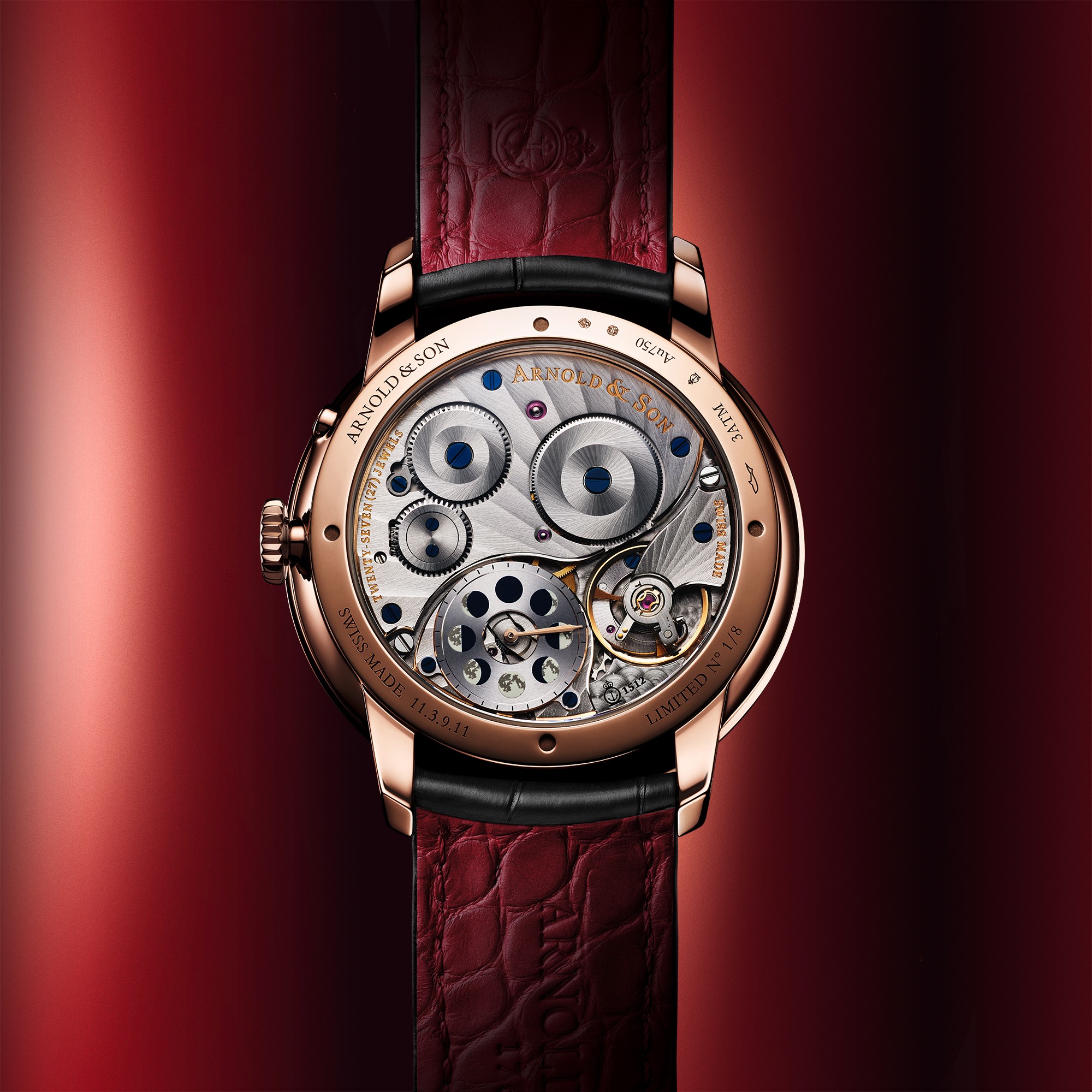Giữ vai trò “trái tim” của Perpetual Moon 41.5 Red Gold “Year of the Horse”, Calibre A&S1512 hiển thị chu kỳ Mặt Trăng thực kéo dài 29 ngày, 12 giờ, 44 phút và 2,8 giây với độ chính xác vượt trội. Cơ cấu hiển thị này cần tới 122 năm mới sai lệch một ngày so với chu kỳ trăng thực, với điều kiện đồng hồ luôn trong trạng thái cót đầy. Tương tự mọi bộ máy xuất xưởng Arnold & Son, bộ máy lên dây cót thủ công trữ 90 năng lượng trong hai hộp cót được phát triển, chế tác, trang trí, lắp ráp, hiệu chỉnh và hoàn thiện vỏ hoàn toàn tại xưởng La Chaux-de-Fonds.