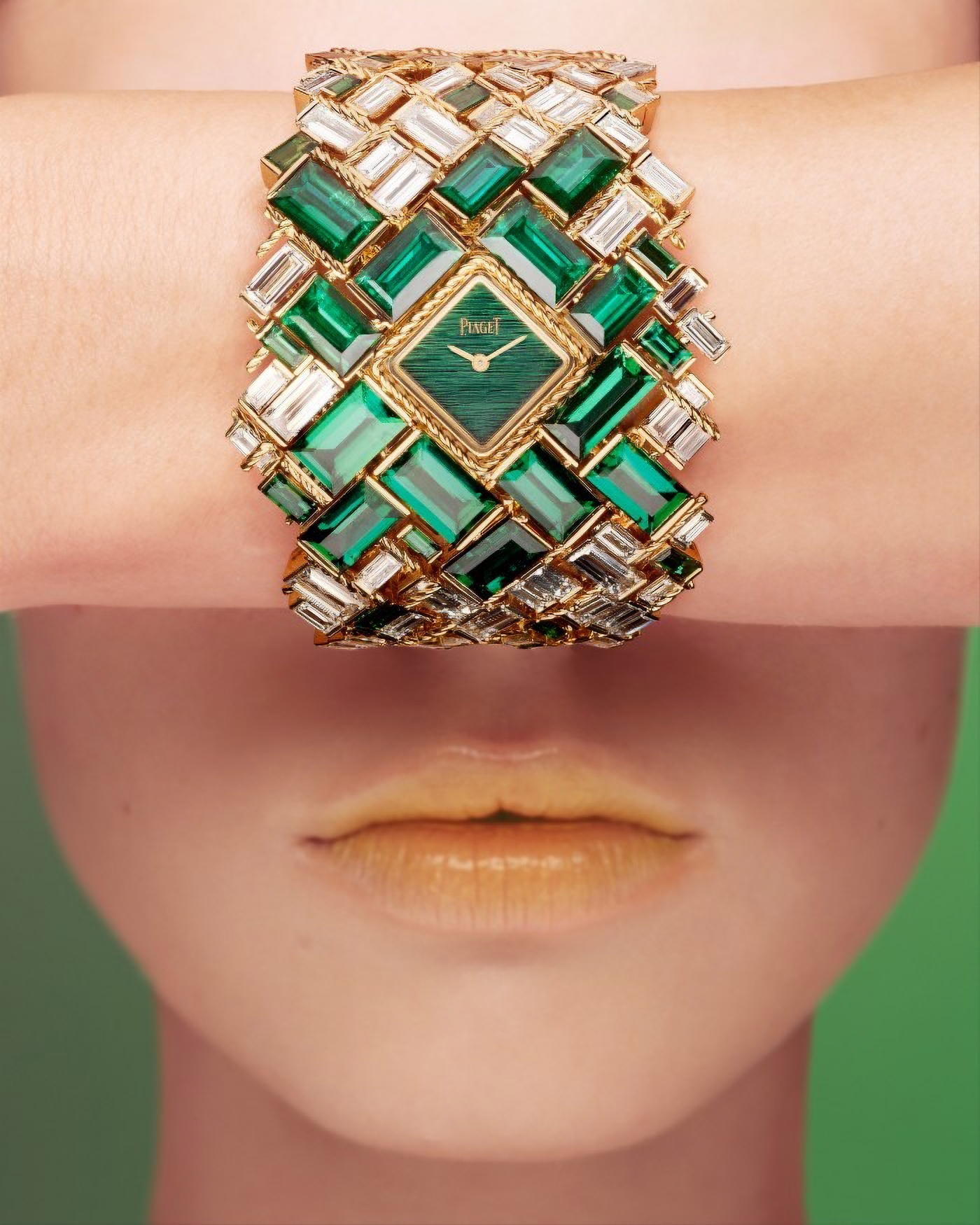 Thiết kế đồng hồ Piaget sở hữu vòng đeo vàng nạm kim cương baguette thuộc Essence of Extraleganza Collection