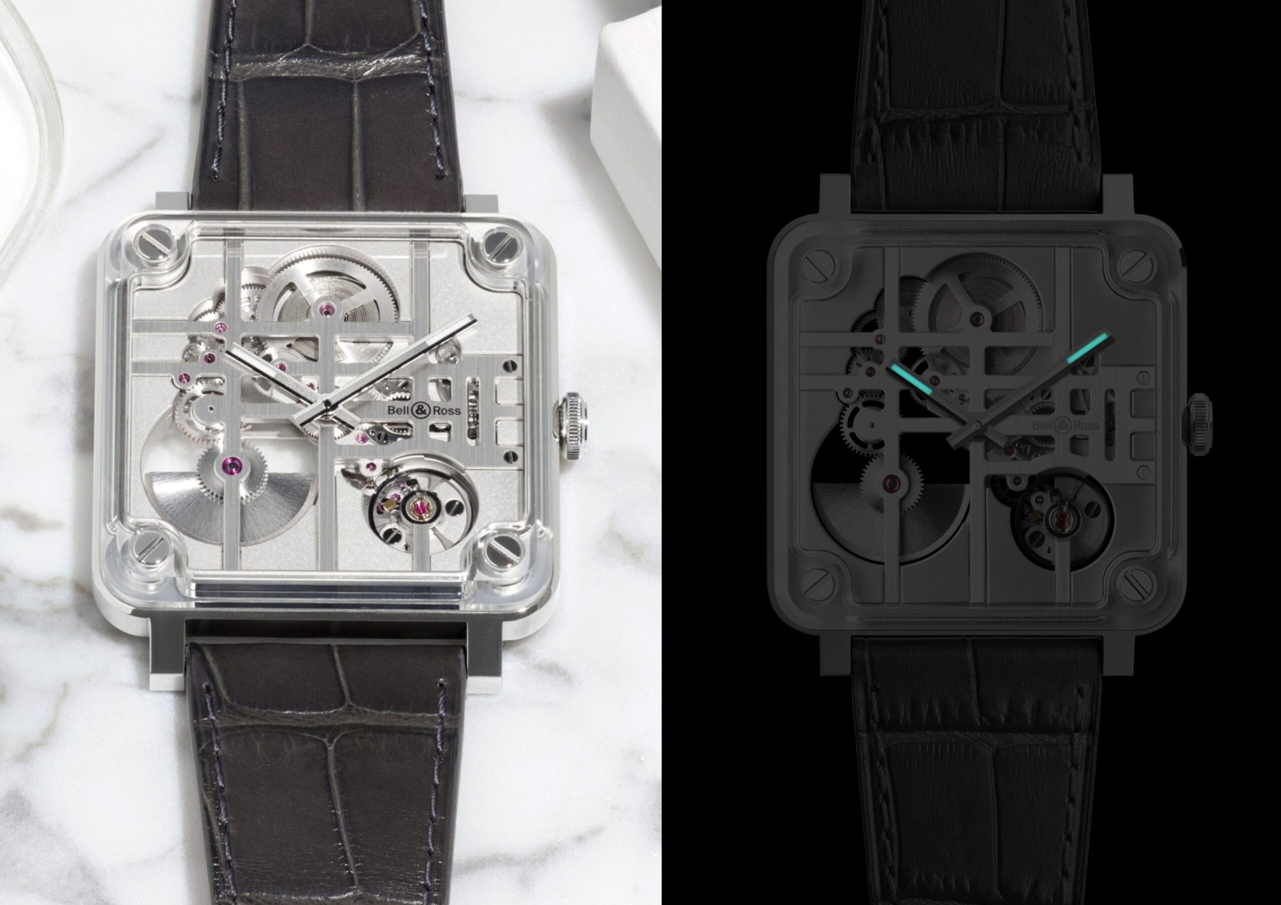 BR-X3 Micro-Rotor biến cổ tay thành một sân khấu chứng kiến màn tương tác ăn ý giữa hình khối, ánh sáng cùng độ chính xác tương tác theo từng chuyển động. Giới hạn 99 chiếc, tân phẩm Bell & Ross sở hữu vỏ vuông đặc trưng với bốn ốc vít biểu tượng, tiết lộ từng nhịp đập bộ máy tự động qua thiết kế bán lộ cơ.