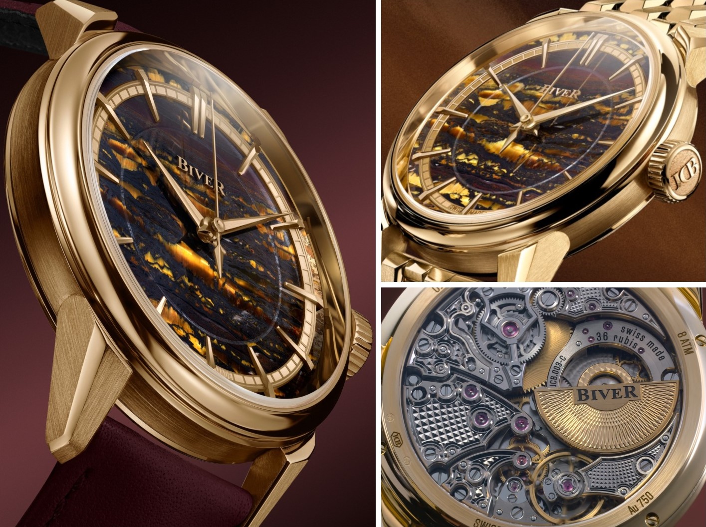 Automatique Oeil de Fer ghi lại khoảnh khắc gặp gỡ đầy thi vị giữa nghệ thuật tự nhiên của trái đất và tinh hoa chế tác đồng hồ Thụy Sỹ đỉnh cao. Không chỉ hấp dẫn ánh nhìn với mặt số hòa quyện táo bạo giữa vàng và đá, tân phẩm Biver còn đánh thức niềm khát khao sở hữu bằng từng nhịp đập tích tắc điều khiển bởi Calibre JCB-003-C.