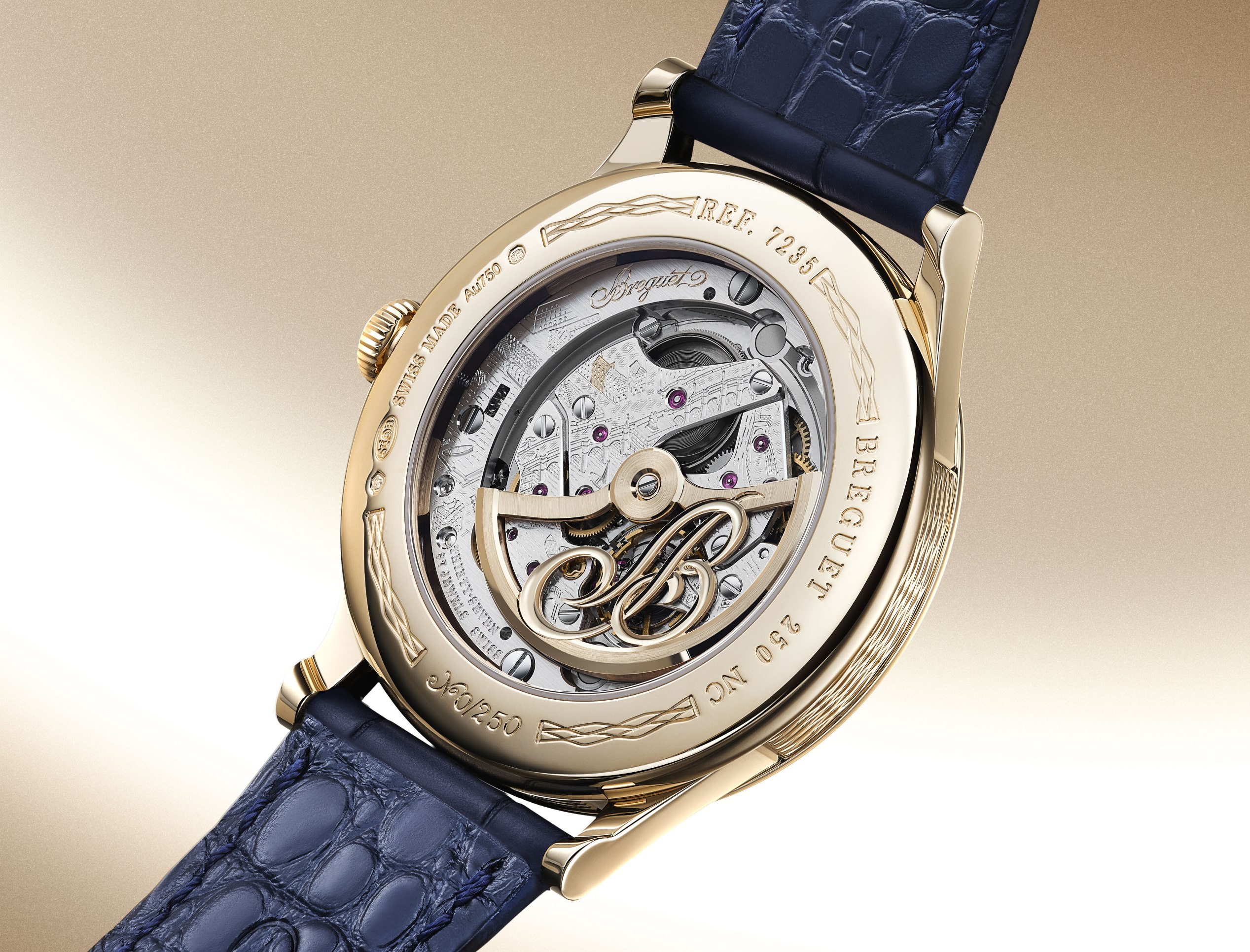 ượt qua quy mô thương hiệu, Breguet là di sản của một con người mang tầm nhìn vượt thời đại. Bởi lẽ, nhà sáng lập – Abraham-Louis Breguet – định hình nên phong cách chế tác tiên phong với những đặc trưng bất hủ, như kim “Breguet”, đã trở thành biểu tượng. Vào năm 1775, mặt số đồng hồ cả để bàn lẫn bỏ túi vẫn rườm rà và thiếu bản sắc. Chính thợ đồng hồ bậc thầy đã cách mạng hóa thẩm mỹ ấy bằng ngôn ngữ thiết kế tinh gọn, thanh lịch và dễ đọc, mở ra kỷ nguyên tân cổ điển trong Haute Horlogerie. Gần nửa thế kỷ cống hiến với kỷ luật nghiêm ngặt, Breguet đặt nền móng cho ngôn ngữ chế tác vượt thời gian hiện vẫn tiếp tục tỏa sáng sau hơn 250 năm.Tinh thần của Breguet được thể hiện trọn vẹn trong “cỗ máy” No. 5, hoàn thành vào năm 1794 cho học giả văn chương François Jourgnac Saint-Méard. Lấy cảm hứng từ mẫu đồng hồ bỏ túi hiện trưng bày tại Bảo tàng Breguet, Place Vendôme, Paris, Classique Phase de Lune 7235 giới hạn 250 chiếc. mặt số tái hiện bố cục nguyên bản: kim đôi trung tâm, thang năng lượng ở vị trí 10 – 11 giờ, lịch tuần trăng tại mốc 2 giờ và kim giây nhỏ giữa khoảng 5 – 6 giờ, biểu tượng cho sự cân bằng thanh nhã pha chút ngẫu hứng đặc trưng Breguet.