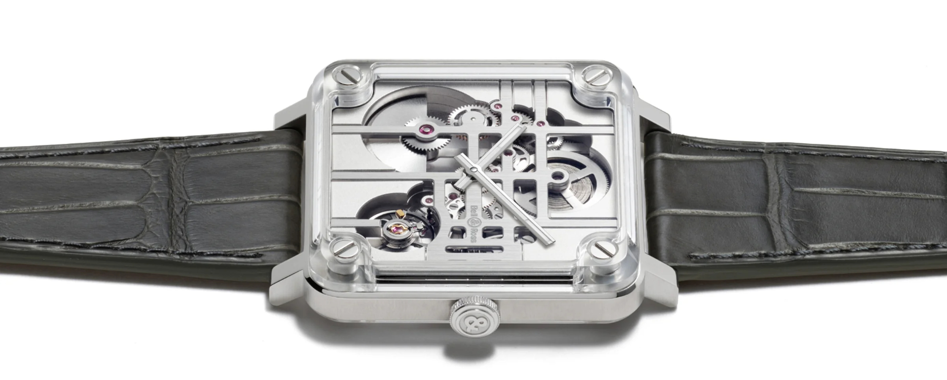 Sự vận hành hấp dẫn của mẫu đồng hồ còn có thể được quan sát ở cả mặt trước và mặt sau bằng sapphire để lộ tấm đế được chạm khắc thủ công với tên Breguet và số tham chiếu duy nhất của bộ máy. Để tăng thêm độ xa xỉ, viền và vấu cũng được nạm kim cương, trong khi núm vặn được tô điểm bằng một viên kim cương giác cắt hoa hồng.