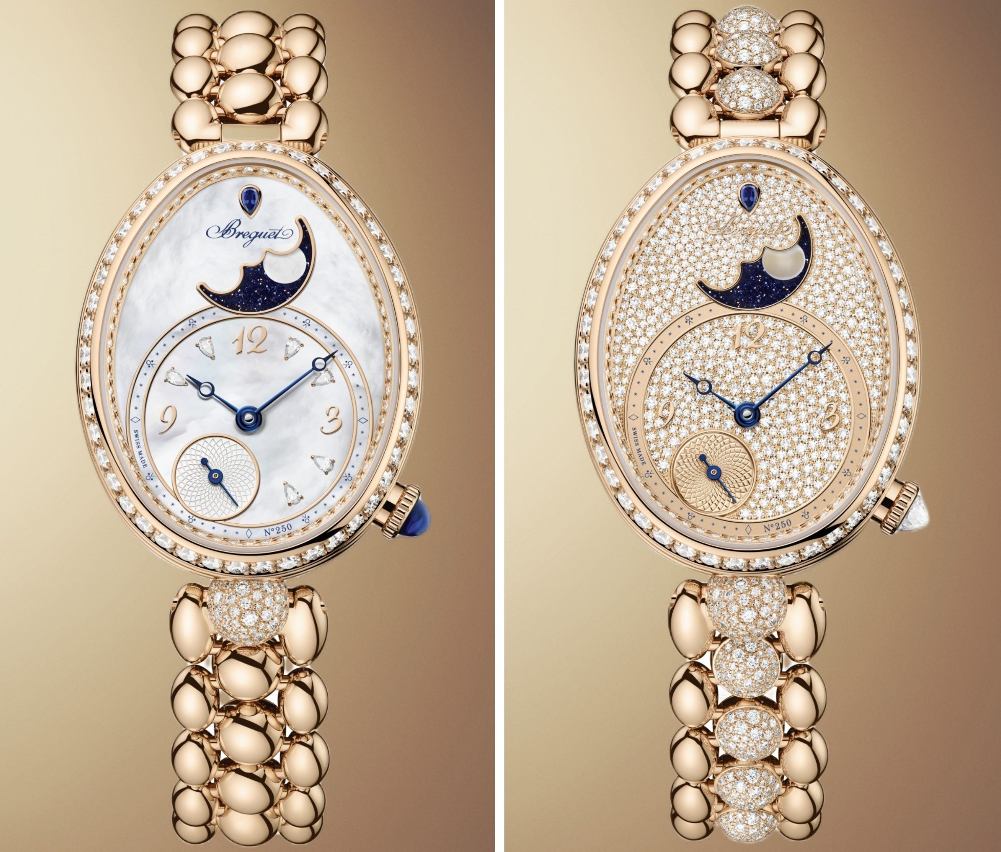 Sở hữu ngoại diện hoàn toàn mới, Reine de Naples Phase de Lune 9935 ra mắt nhân dịp kỷ niệm 250 năm thành lập Breguet, là thành viên đầu tiên trong bộ sưu tập được thiết kế 100% dành riêng phái đẹp. Hiện diện trong bốn phiên bản, mỗi chiếc 9935 mang dòng khắc đặc biệt đánh dấu sự kiện quan trọng này.