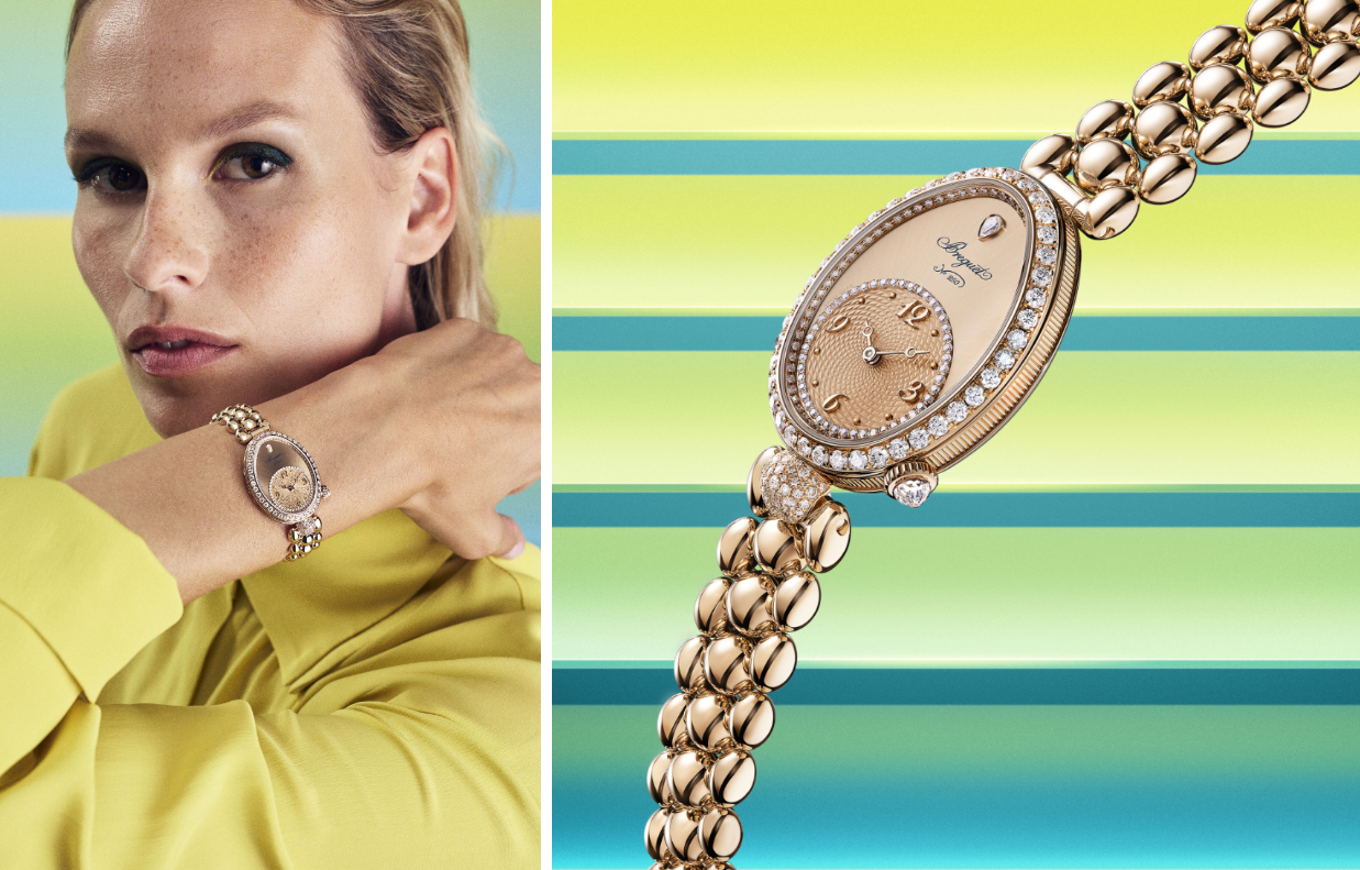 Quyến rũ và tinh tế vô ngần, Reine de Naples Collection riêng dành tôn vinh cổ tay phái đẹp – nguồn cảm hứng kiêm nàng thơ bất tử của Breguet. Kế thừa nét đẹp trường tồn hơn hai thập niên qua, Reine de Naples Phase de Lune 9935 cùng Reine de Naples Phase de Lune 8925, hai phiên bản mới ra mắt nhân 250 năm thành lập thương hiệu, càng đáng khát khao khi lần đầu khoác vỏ vàng Breguet quý giá bên cạnh vô số nâng cấp hoặc bộ máy hoặc ngoại diện.