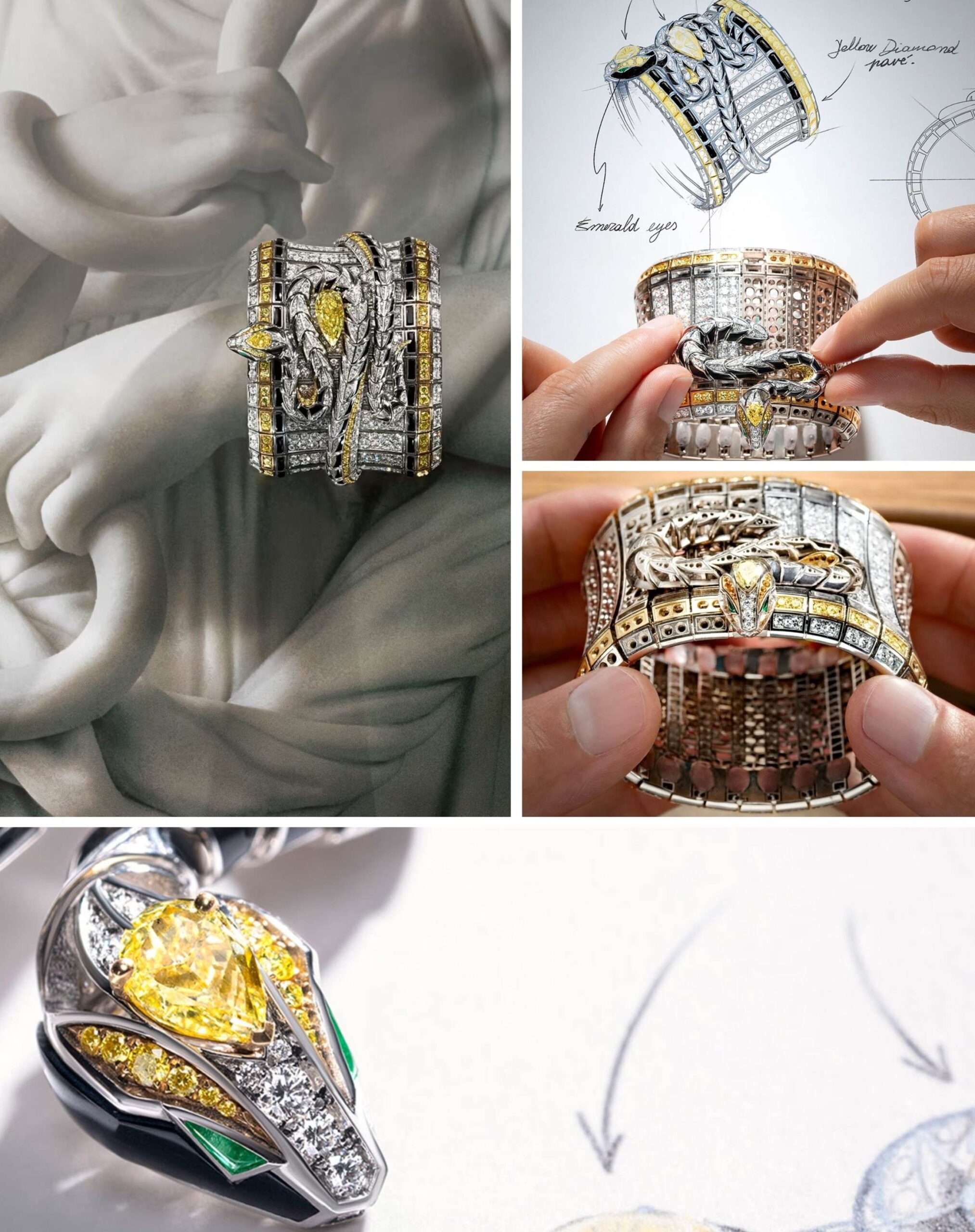 Đặc biệt, các thiết kế haute horlogerie trong bộ sưu tập cũng theo đuổi cùng một tinh thần tham vọng, bao gồm Notte Stellata Divas’ Dream với mặt số opal đen tái hiện bầu trời đêm trên Rome vào năm 753 TCN, cùng Pavone bracelet và Serpenti Dea Secret.