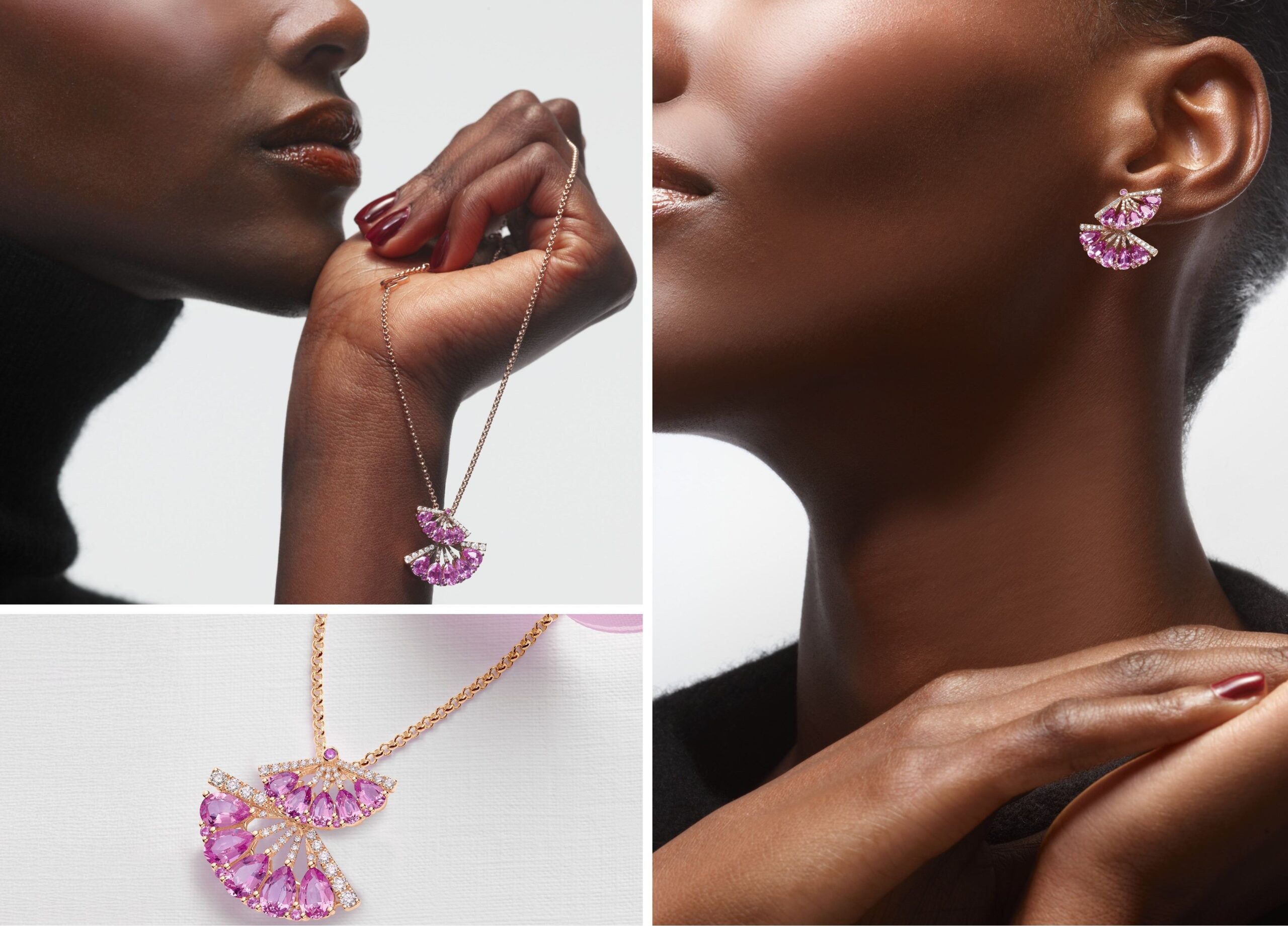 Lấy cảm hứng từ một thiết kế Haute Joaillerie được yêu mến thuộc Chopard Red Carpet 2023 Collection, những tuyệt tác này gợi nhớ đến đôi hoa tai pendants nổi bật với cụm kim cương được sắp đặt như cánh hoa đang khẽ lay động, gợi liên tưởng đến tà váy ballet trong chuyển động. Tinh thần nhẹ nhàng đầy ngẫu hứng ấy tiếp tục được Chopard khai thác trong dòng trang sức sắc màu mới thuộc bộ sưu tập L’Heure du Diamant. Được chế tác dưới dạng hoa tai và vòng cổ vàng hồng 18K hợp đạo đức điểm xuyết sapphire hồng kết hợp kim cương, các thiết kế mang tựa bản tình ca ngọt ngào dành cho ánh sáng, chuyển động duyên dáng cùng cảm giác phi trọng lượng của những chất liệu mong manh như ren hay tulle.