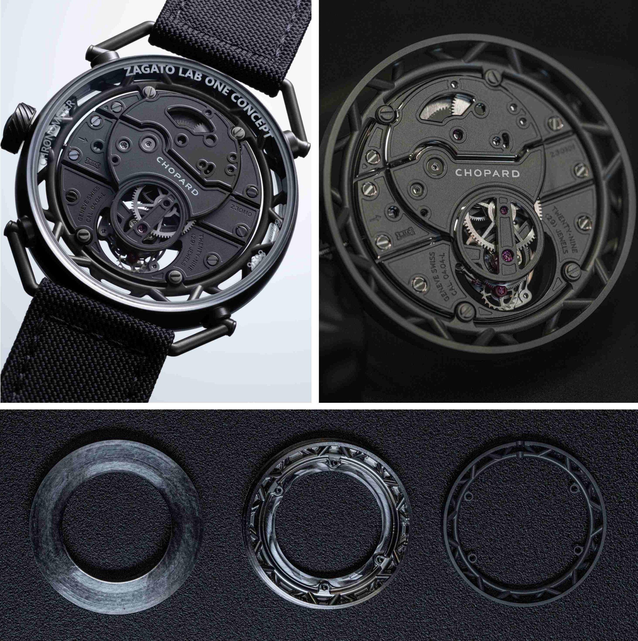 Ngôn ngữ thiết kế của Zagato Lab One Concept được xây dựng từ triết lý chế tạo xe concept, đặc biệt là cấu trúc Tubular vốn gắn liền với tên tuổi Zagato. Thay cho càng nối truyền thống, Chopard phát triển kiến trúc vỏ dạng khung ống, lấy cảm hứng trực tiếp từ chassis xe đua nhằm tối ưu độ cứng kết cấu và giảm trọng lượng tổng thể. Cấu trúc này giúp phân bổ ứng suất cơ học hiệu quả hơn khi chịu tác động, đồng thời góp phần bảo vệ bộ máy thông qua kiến trúc vỏ và hệ thống chống sốc bên trong.
