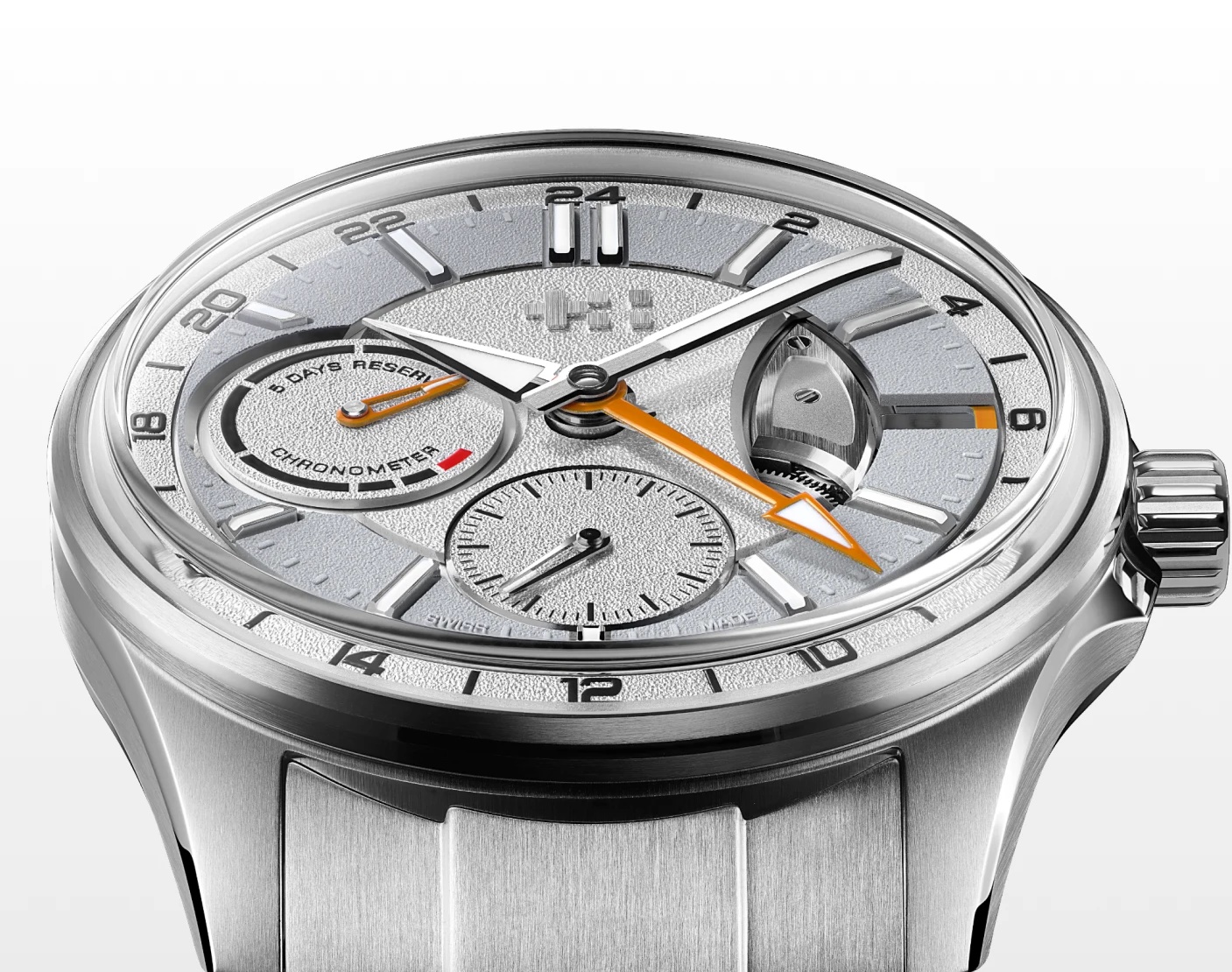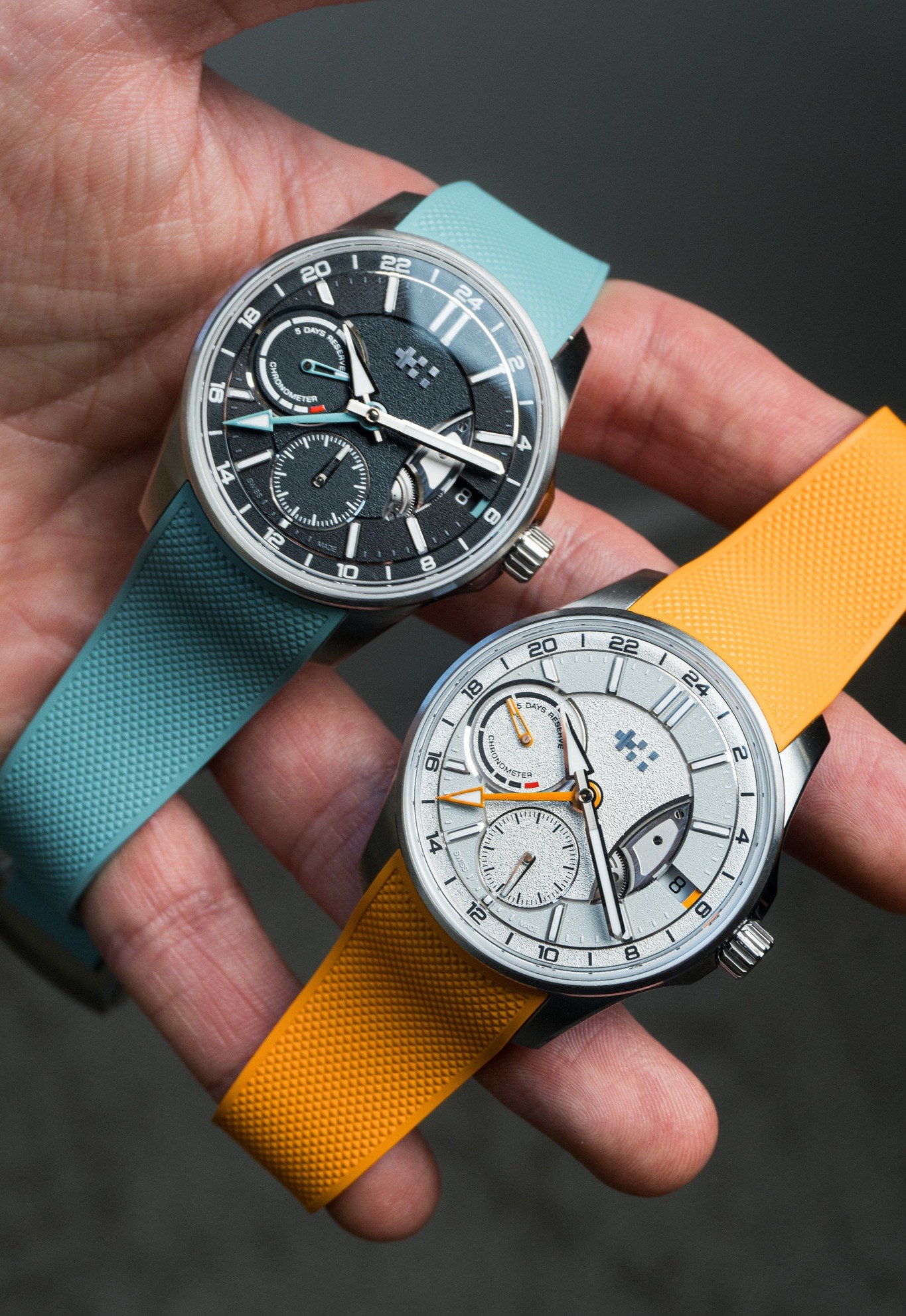 Câu chuyện kỹ thuật được thương hiệu đồng hồ Anh quốc khéo léo thuật lại trên mặt số. Cụ thể, thiết kế phân tầng rõ ràng, hiển thị các thông tin quan trọng nhất – giờ địa phương và giờ quê nhà – xuất hiện ở vị trí trung tâm, nổi bật nhờ vòng tròn chải xước nâng cao hỗ trợ các cọc số. Trong khi đó, các chỉ báo phụ được đặt chìm tinh tế trên nền hoàn thiện grainé tương phản. Mặt phụ giây nhỏ nằm tại vị trí 6 giờ, chỉ báo năng lượng tại 9 giờ, và ở vị trí 3 giờ, cầu GMT lộ cơ hé lộ bánh răng GMT hoàn thiện chải tròn bên dưới.