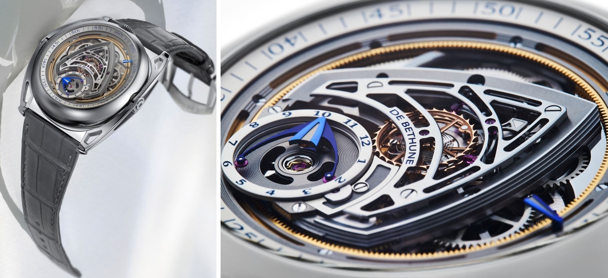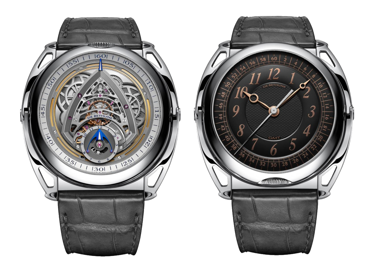 Biểu tượng cho tính linh hoạt và sáng tạo, chiếc đồng hồ hai mặt này thể hiện rõ ràng đỉnh cao kỹ thuật làm nên danh tiếng De Bethune cũng như tay nghề xuất sắc của đội ngũ nghệ nhân trong việc xử lý vật liệu, màu sắc cùng ánh sáng. Hai mặt số với bản sắc đối lập – đương đại và cổ điển – phản chiếu sự hài hòa giữa truyền thống cùng hiện đại. Tổng thể được hoàn thiện với dây da cá sấu lót mềm mại, mang lại cảm giác thoải mái khi đeo.