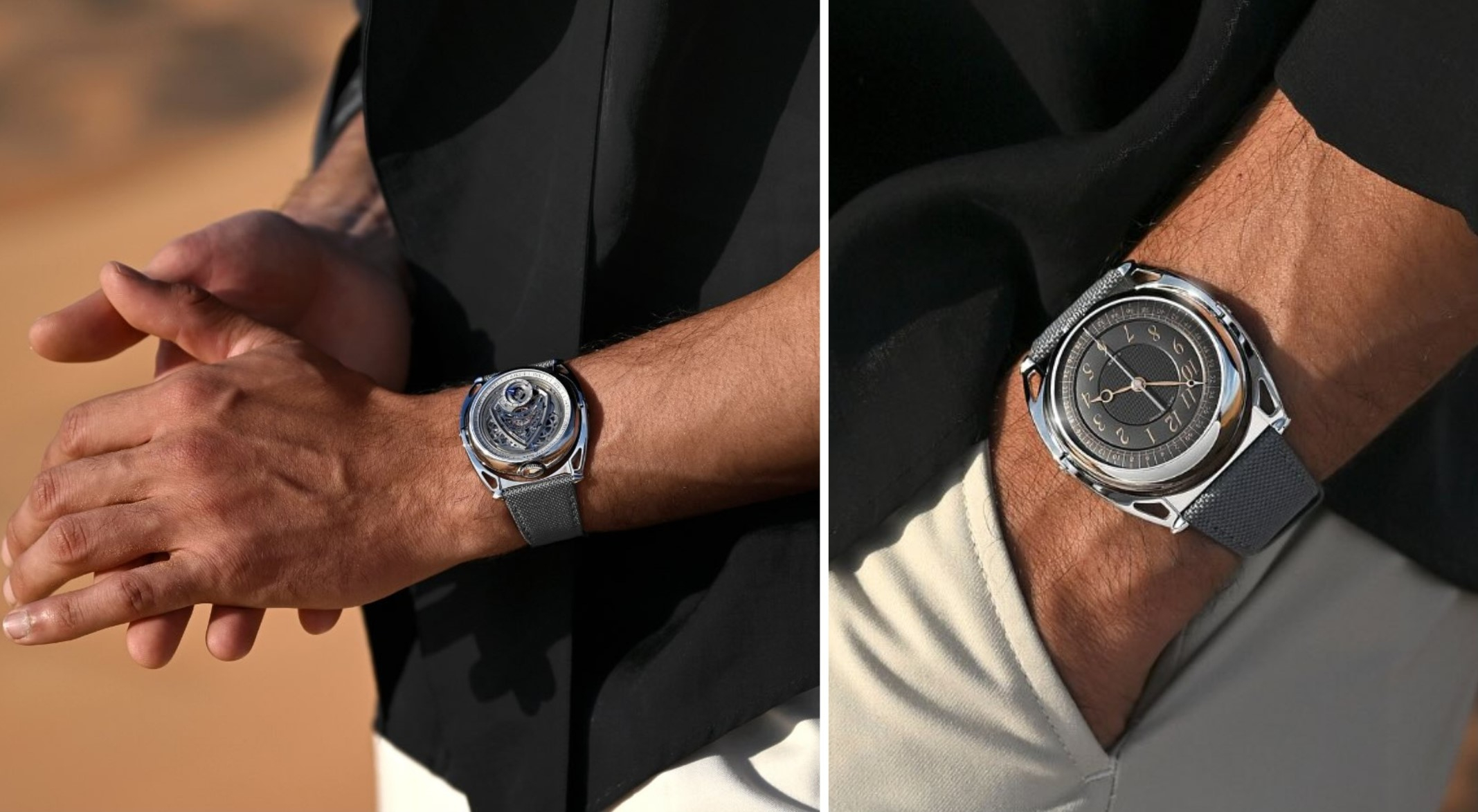 Phô diễn cơ chế tinh xảo, mặt số đương đại phía trước cho phép đọc thời gian với trọng tâm đặt tại bánh răng cân bằng vị trí 6 giờ, trong khi thang phút nằm dọc theo vành ngoài. Công phu chế tác thể hiện qua các lớp bề mặt đánh bóng và tạo vòm, kết hợp hoàn thiện microlight, phun bi cùng vân xoắn, cho thấy sự chăm chút đặc biệt dành cho việc trang trí bộ máy.