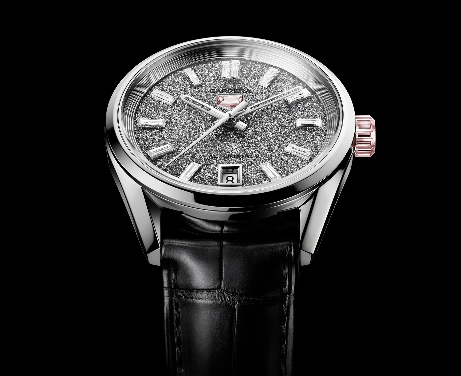 Ánh sáng phản chiếu tạo nên hiệu ứng chưa từng có, như một dải ngân hà được cắt gọt. Vỏ và dây đeo gắn hơn 15 carat kim cương, trong đó núm vặn là một viên kim cương nhân tạo 2,5 carat minh chứng cho kỹ thuật chế tác siêu việt. Ở phiên bản 36mm, TAG Heuer đưa sắc màu vào kim cương, tạo ra những viên hồng và vàng được nhuộm ngay trong quá trình sinh trưởng. Đó không chỉ là thành tựu công nghệ, mà là tuyên ngôn về tương lai của vẻ đẹp bền vững nơi khoa học và nghệ thuật cùng tỏa sáng.