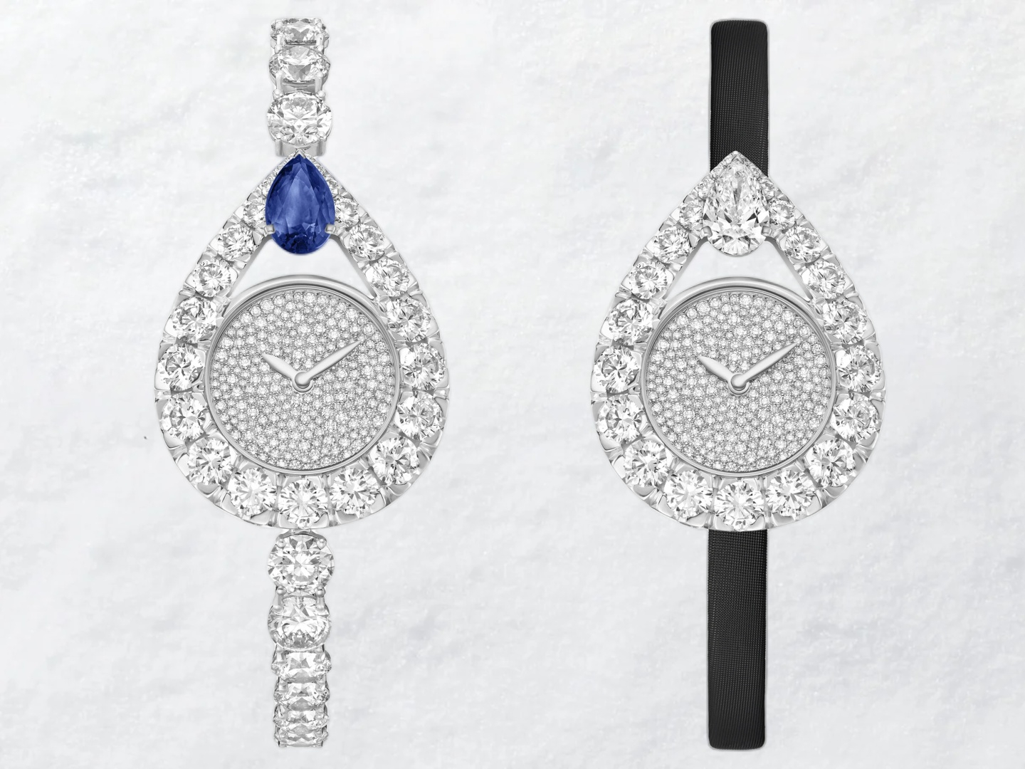 Với Joséphine Aigrette Impériale, Chaumet tôn vinh hình dáng cắt quả lê biểu tượng của nữ tính và quyền lực. Toàn bộ vỏ đồng hồ được thiết kế như một viên đá quý khổng lồ, mềm mại, uyển chuyển và quý phái. Phiên bản vàng trắng nạm kim cương pavé hoặc viền satin mang đến nét thanh thoát, trong khi viên sapphire hình quả lê ở đỉnh mặt số gợi nhớ những vương miện được tạo riêng cho Hoàng hậu Joséphine. Đây là một bản giao hưởng của hoàng tộc, nơi ánh sáng của đá quý và độ chính xác của thời gian hòa quyện trong sự thanh lịch đặc trưng của Chaumet.