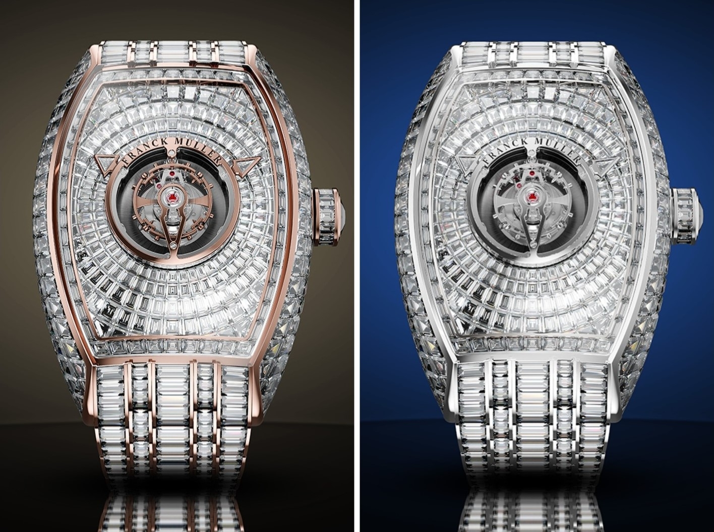 Vỏ Curvex vàng hồng hoặc vàng trắng 36 x 58,1mm nạm tổng cộng 778 viên kim cương baguette-cut