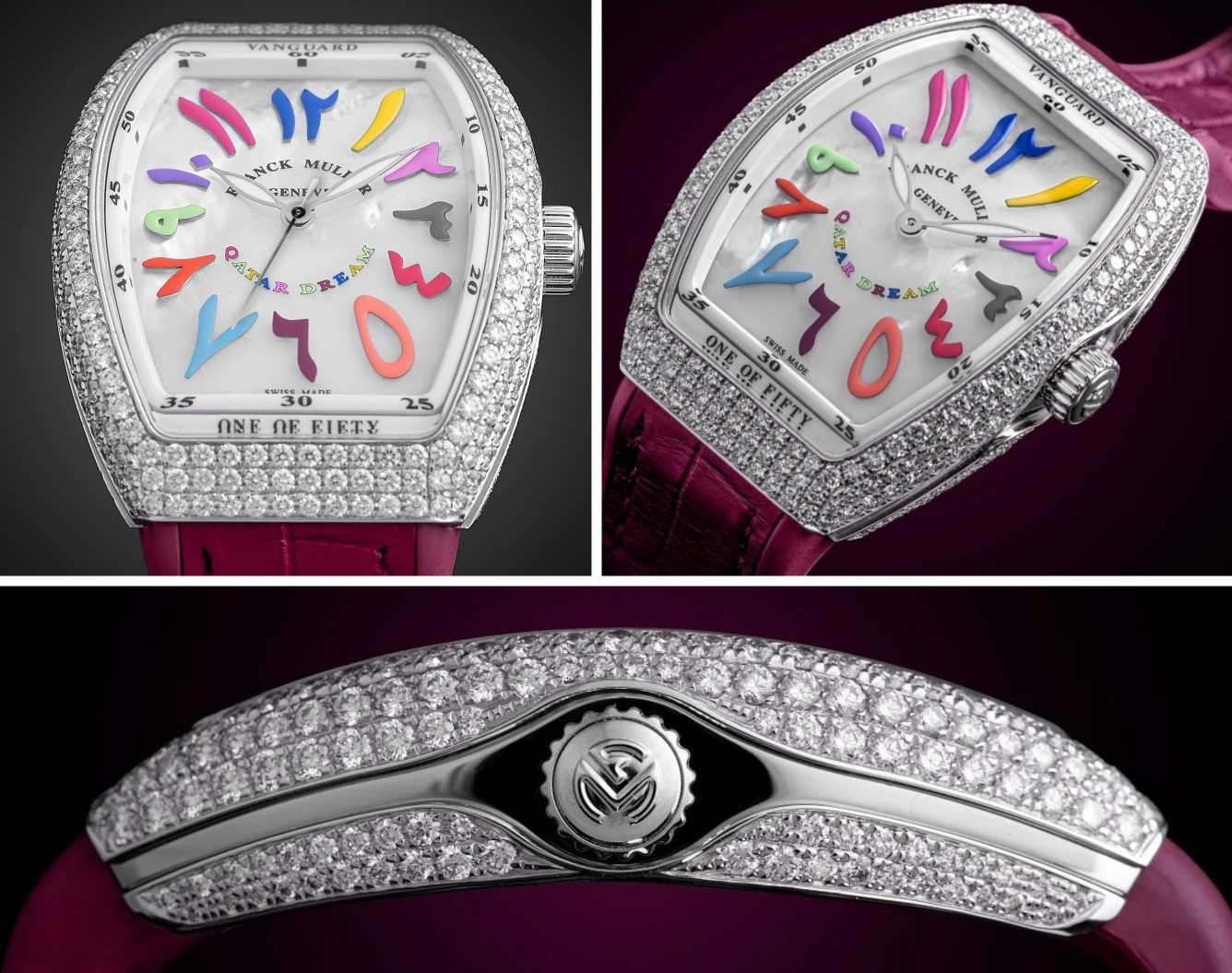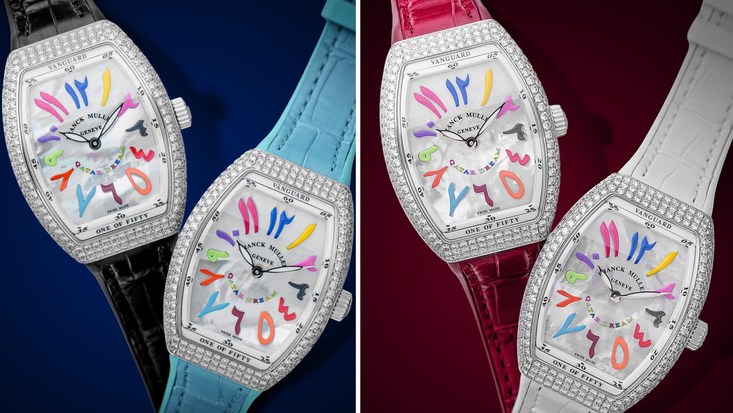 iấc mơ ngọt ngào được Franck Muller khéo léo dệt trên những mặt số sở hữu cọc số sơn thủ công lấy cảm hứng từ quốc kỳ Qatar. Đồng giới hạn 50 chiếc mỗi mẫu, Vanguard Qatar Dreams đưa thời gian bước ra khỏi những khuôn mẫu quen thuộc. Bởi lẽ, khi nghệ thuật chế tác đồng hồ chạm tới cảm xúc, độ chính xác nhường chỗ cho thi ca.