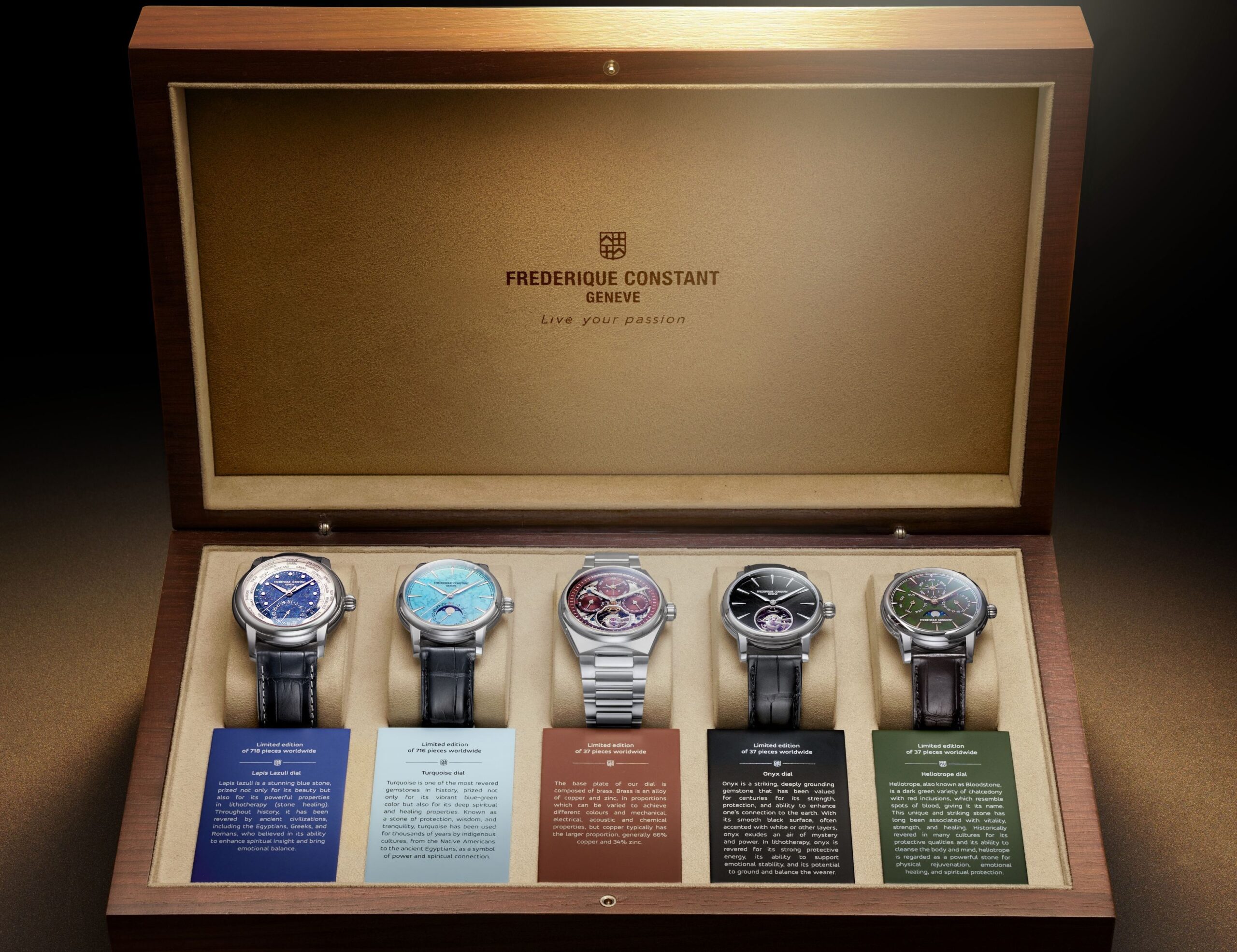 ừ buổi đầu thành lập vào năm 1988, Frederique Constant đã kiên định theo đuổi con đường riêng trong thế giới Haute Horlogerie Geneva, phát triển từ xưởng đồng hồ gia đình độc lập thành manufacture tích hợp hoàn chỉnh, gắn liền với triết lý chế tác tinh xảo và tính xa xỉ dễ tiếp cận. Tiếp tục truyền thống kỷ niệm từng chặng đường sáng tạo bằng một bộ sưu tập giới hạn hàng năm, năm 2025, hãng dành riêng 37 bộ gift set để đánh dấu 37 năm đam mê cơ học, hướng đến những nhà sưu tầm muốn nắm giữ những mẫu hiếm nhất của xưởng chế tác Geneva. Dung hòa hoàn hảo giữa thẩm mỹ và kỹ thuật, bộ sản phẩm đặc biệt gồm 5 phiên bản vận hành bằng các bộ máy nội bộ tích hợp complication đặc trưng, như perpetual calendar, moonphase, worldtimer và tourbillon. Đặc biệt, sự hiện diện của mặt số đá tự nhiên, tạo nên vẻ đẹp độc bản cho mỗi phiên bản – dù thuộc series giới hạn – đều thực sự “có một không hai”.CLASSIC MOONPHASE DATE MANUFACTURE