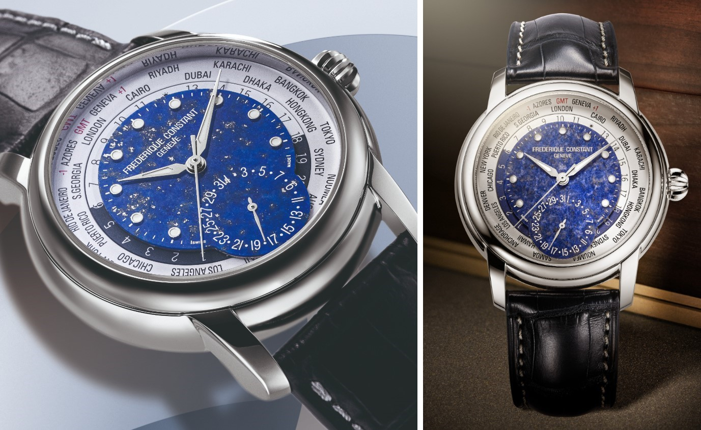 Xuyên suốt hành trình lịch sử nhân loại, lapis lazuli đã được các nền văn minh cổ đại như Ai Cập, Hy Lạp và La Mã tôn kính. Loại đá quý này giữ vai trò điểm xuyết các phần chính mặt số cùng cửa sổ hiển thị ngày lệch tâm ngụ vị trí 6 giờ của Classic Worldtimer Manufacture. Vòng 24 thành phố lớn bao quanh mặt số sở hữu thiết kế dễ đọc. Trong khi đó, thang chỉ ngày – đêm được hiệu chỉnh theo chu kỳ 24 giờ, với hai phần tách biệt tự nhiên: một tối và một sáng. Đặc biệt, con số giới hạn 718 chiếc mà cỗ máy thép 42mm sẽ xuất xưởng Frederique Constant bắt đầu từ quý I năm 2026, gợi nhắc đến số hiệu FC-718 manufacture Calibre.