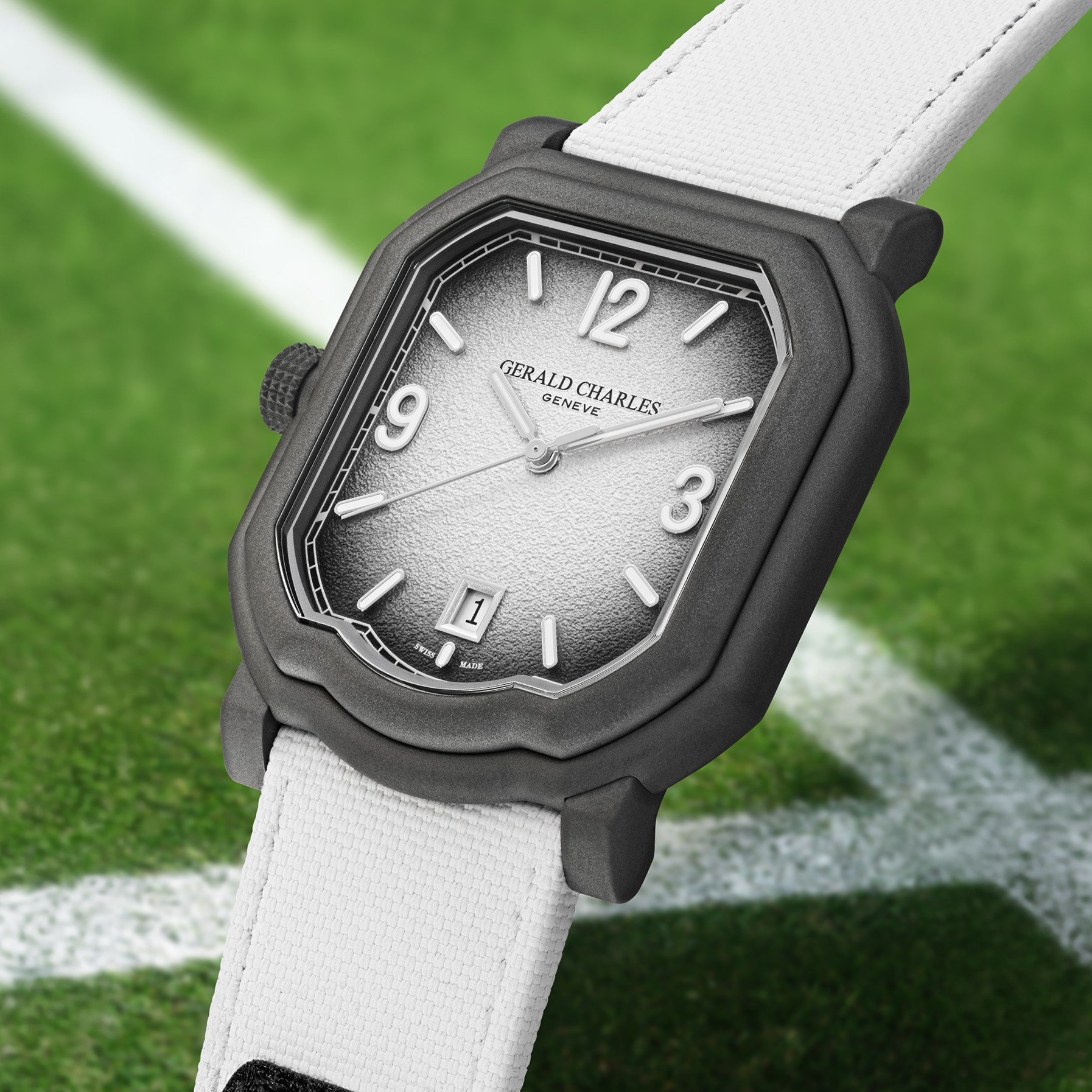 ắn tham chiếu Ref. GC2.0-TX-TNDB-04GR-RSVC-DLE, tân phẩm Gerald Charles phản ánh nguồn cảm hứng lấy từ quy tắc trang phục mang tính biểu tượng của giải quần vợt sân cỏ danh giá bậc nhất thế giới – nơi sắc trắng luôn đại diện cho kỷ luật, sự tôn trọng, nét thanh lịch kín đáo. Giới hạn 200 chiếc toàn cầu, phiên bản này không chỉ củng cố mà còn nâng tầm mối quan hệ gắn kết bền bỉ giữa thương hiệu Thụy Sỹ với môn thể thao quần vợt trong bối cảnh trang trọng và mang tính biểu tượng hơn. Trang trí họa tiết tinh xảo, mặt số trắng vừa tăng cường khả năng đọc giờ, vừa gợi nhắc sự thuần khiết cùng kỷ luật của truyền thống “all-white” trong quần vợt Anh.