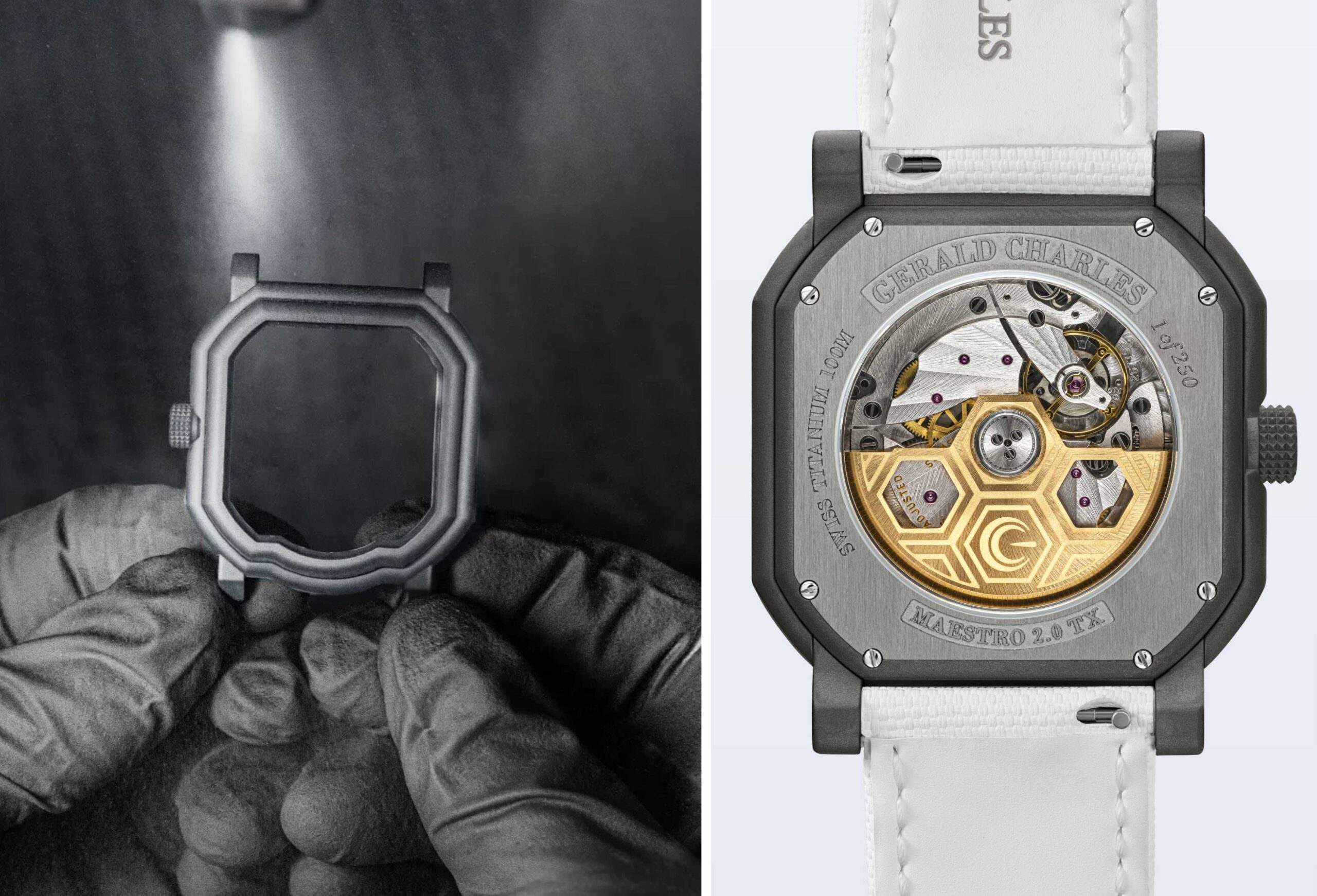 Maestro GC Sport tự hào diễn giải ErgonTeq®, tiêu chuẩn kỹ thuật công thái học độc quyền Gerald Charles. Được phát triển bởi đội ngũ R&D của Maison, ErgonTeq® đảm bảo hệ thống vấu nối, độ cong vỏ và cấu trúc dây Velcro màu trắng tối ưu hóa diện tích tiếp xúc với cổ tay, từ đó tăng cường độ ổn định cũng như phân bổ trọng lượng hiệu quả. Kết quả là cảm giác đeo thoải mái vượt trội trong mọi chuyển động – từ những pha bóng cường độ cao đến sử dụng hằng ngày – thích ứng linh hoạt với cả cổ tay nhỏ lẫn lớn.