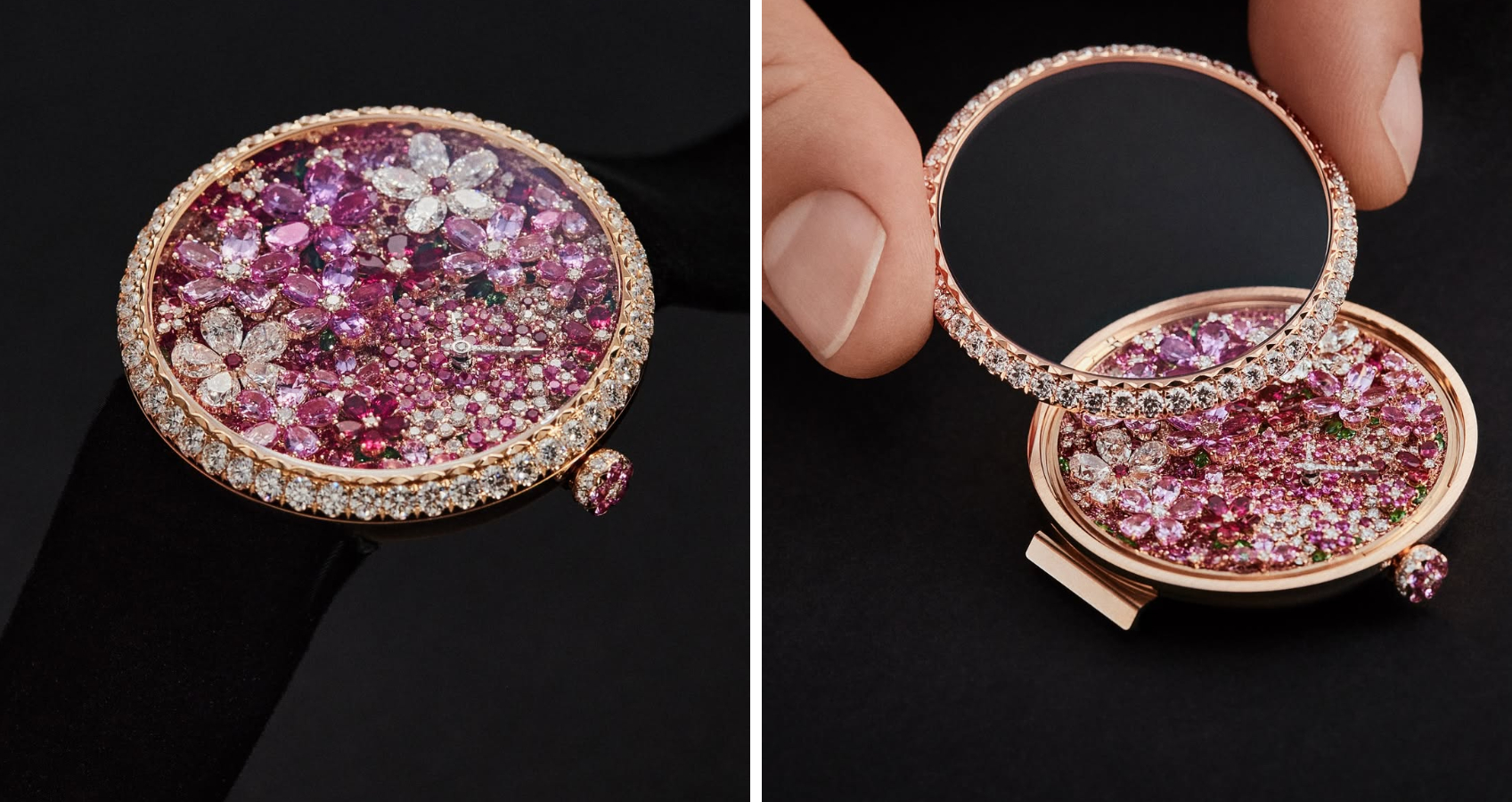 Bằng đôi tay khéo léo, đội ngũ kim hoàn đã biến nghệ thuật sắp đặt và nạm đá trở thành phép màu kỳ diệu dệt nên “xiêm y” lộng lẫy cho chiếc đồng hồ. Thành hình sau 480 giờ chế tác, trong đó khoảng 150 giờ chỉ dành cho việc nạm đá thủ công, tuyệt phẩm biến việc xem thời gian thành một khoảnh khắc thưởng lãm nghệ thuật đích thực với đôi kim nạm kim cương đều đặn vòng xoay ở vị trí 3 giờ.