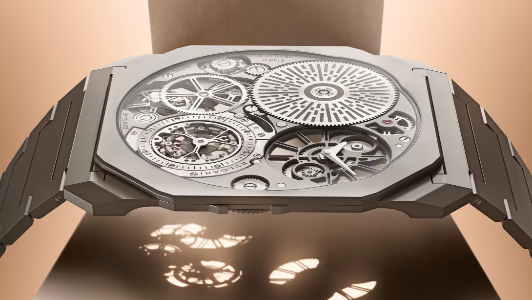 Tích hợp tourbillon skeleton vào một cấu trúc có tổng độ dày chỉ 1,85mm, BVLGARI Octo Finissimo Ultra Tourbillon thiết lập chuẩn mực mới cho đồng hồ siêu mỏng. Giới hạn 20 chiếc, kiệt tác sở hữu vỏ 40mm bằng titanium hoàn thiện phun cát, kết hợp phiến nền tungsten carbide đảm bảo độ cứng và độ ổn định tối đa cho Calibre BVF 900. BVLGARI nâng nghệ thuật skeletonisation lên tầm cao mới, tối ưu hóa khả năng truyền sáng xuyên suốt bộ máy lên dây cót thủ công siêu mảnh trữ 42 giờ năng lượng, tạo nên các mảng tương phản nổi bật thông qua kỹ thuật hoàn thiện đương đại trên những chi tiết hiển thị. Cũng trong thiết kế lộ cơ, mặt số phụ hiển thị giờ – phút bằng đồng thau phun cát phủ DLC anthracite nhờ đôi kim phủ rhodium. Ngoại diện chiếc đồng hồ trở nên hoàn thiện khi song hành vòng đeo titanium dày chỉ 1,5mm gắn khóa gập liền mạch.