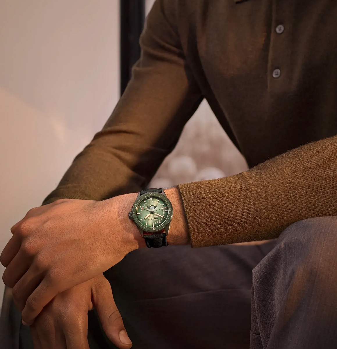 Ở những sắc độ khác, xanh tiếp tục chứng minh khả năng biến hóa hiếm có. Cosmic Green của H. Moser & Cie. gợi tinh thần xanh racing cổ điển, còn Citrus Green lại tươi sáng và trẻ trung hơn. Longines chọn cách tiết chế, để màu xanh trở nên điềm đạm và trường tồn. Ngay cả trên thảm đỏ, màu xanh cũng chứng minh sức hút riêng khi xuất hiện trên cổ tay Robert Downey Jr. với chiếc Blancpain Bathyscaphe Quantième Complet Phases de Lunes.