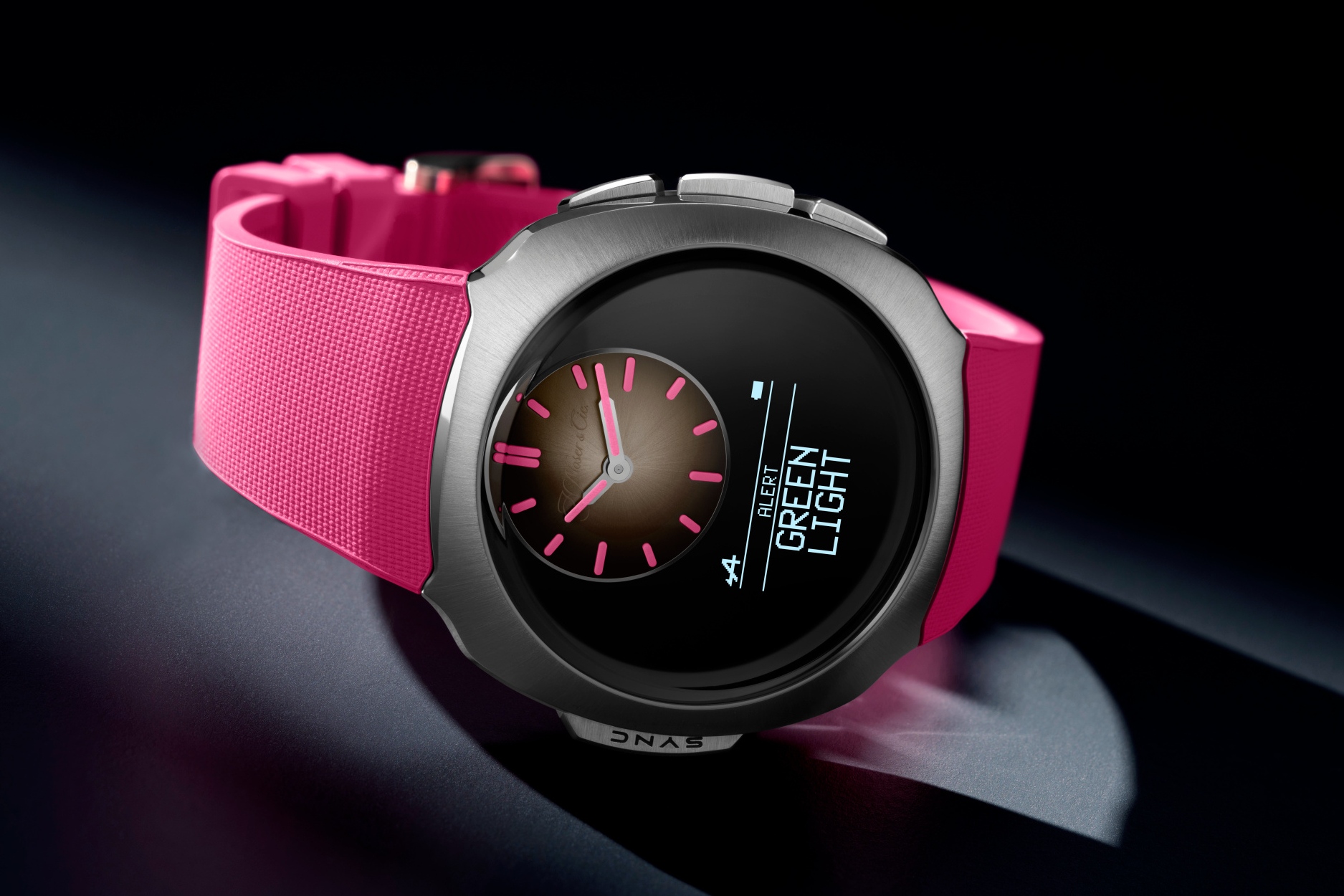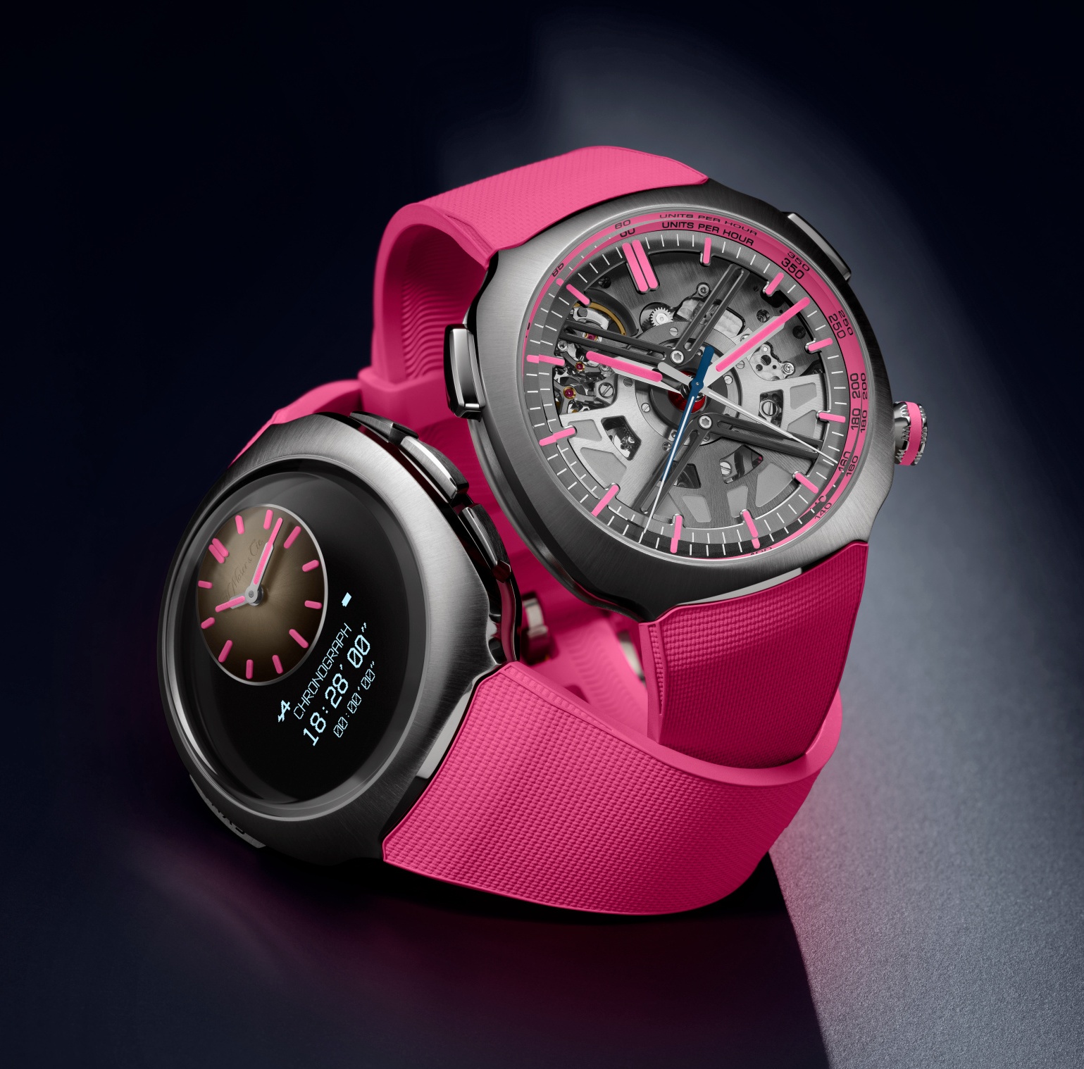Dẫu sở hữu nền tảng kỹ thuật số tinh vi, mẫu đồng hồ này vẫn giữ trọn linh hồn của một cỗ máy thời gian truyền thống. Mặt số Funky Pink fumé dạng vòm nhỏ hiển thị giờ, ngày, được tôn vinh bởi logo phủ lacquer trong suốt một cách tinh tế. Tương thích với cả Android® lẫn iOS®, đồng hồ có thể hoạt động độc lập và đồng bộ qua Bluetooth khi cần. Dự trữ năng lượng được thiết kế bền bỉ: một năm ở chế độ chỉ xem giờ, hoặc sáu chặng đua Grand Prix ở chế độ kết nối. Vững chắc, bền bỉ và hoàn toàn không thuộc về thế giới công nghệ dùng rồi bỏ, chiếc đồng hồ hoàn toàn tách biệt khỏi nhịp tiêu thụ chóng vánh của thời đại.