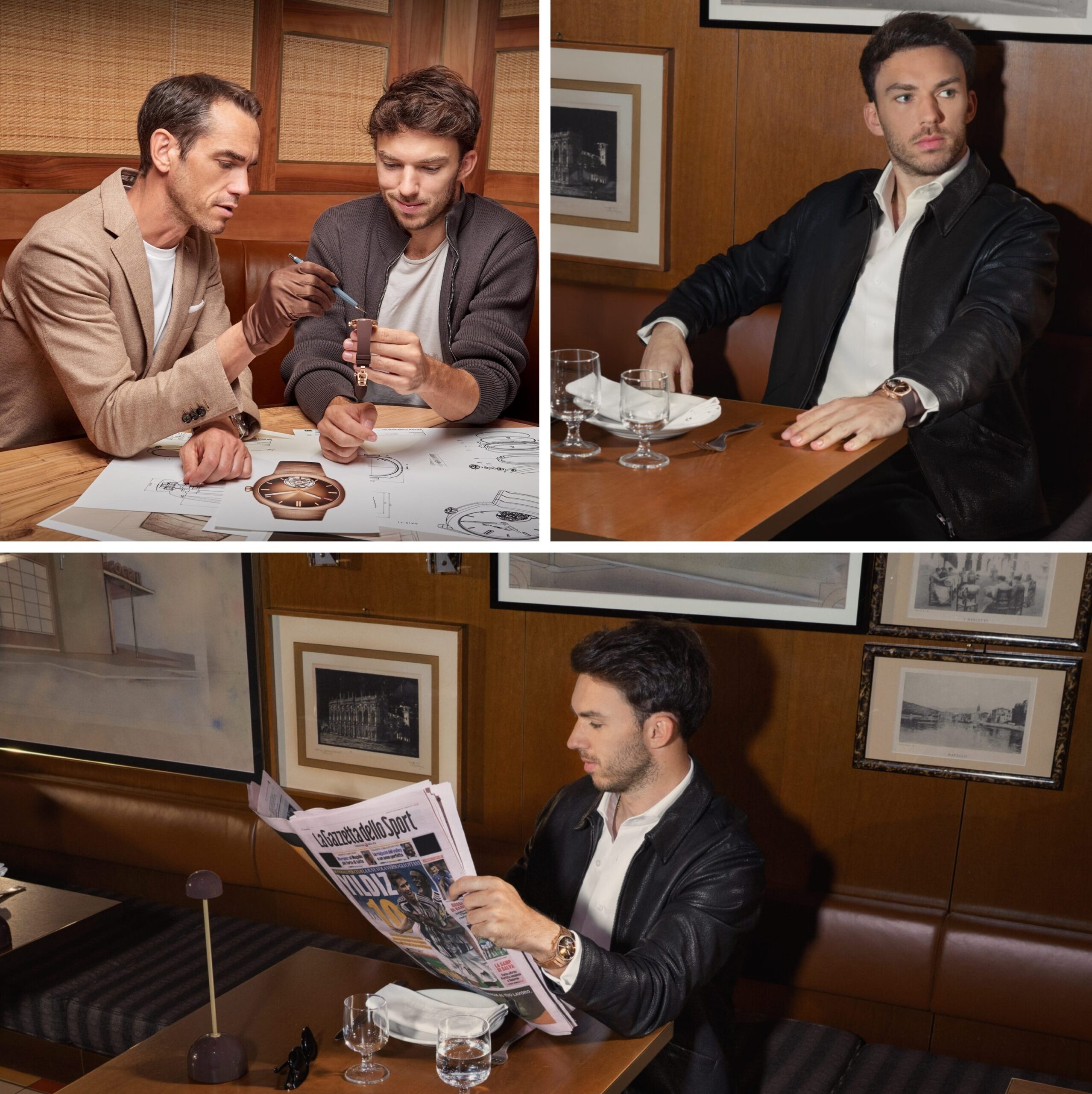 ilan luôn ẩn chứa điều gì đó thú vị khiến guồng quay mọi thứ trở nên chậm lại một nhịp, ngay cả với người quen lao đi ở tốc độ 300 km/giờ như Pierre Gasly. Trên một con phố nhỏ gần trung tâm, có quán cà phê mà tay đua trẻ thường ghé qua mỗi khi trở về thành phố. Chính tại một góc bàn quen thuộc, Pierre Gasly cùng đội ngũ thợ đồng hồ tài hoa H. Moser & Cie. đã gặp gỡ, kể về cơ duyên hợp tác giữa họ. Khung cảnh thật sự phản chiếu tinh thần của màn kết hợp này: chân thực, thân mật và tinh tế. Trong buổi trò chuyện thoải mái bên tách cà phê thoảng hương nồng nàn, Pierre chia sẻ lý do anh bị cuốn hút bởi Moser cũng như quá trình đồng sáng tạo nên Streamliner Tourbillon Pierre Gasly Edition và Streamliner Tourbillon Pierre Gasly On Gold mang đậm dấu ấn cá nhân.