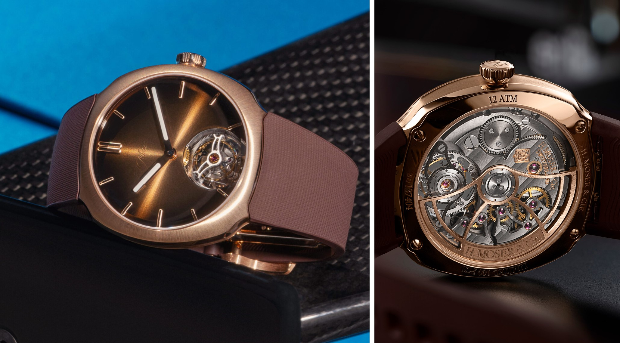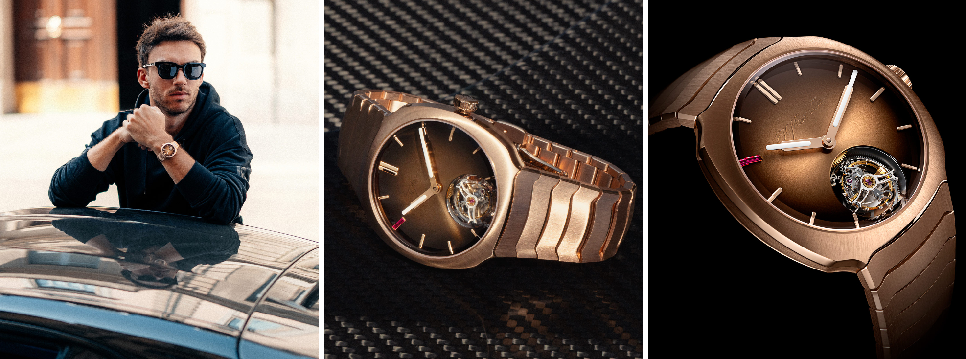 Pierre Gasly, tay đua F1 nổi tiếng, hợp tác cùng H. Moser & Cie. kiến tạo nên bộ đôi đồng hồ phản chiếu chính con người anh: chính xác, mạnh mẽ nhưng giàu cảm xúc. Hiện diện trong hai phiên bản giới hạn lần lượt 100 và 10 chiếc, Streamliner Tourbillon Pierre Gasly sở hữu mặt số Chocolate fumé tuyệt đẹp trưng bày flying tourbillon ở vị trí 6 giờ hài hòa vỏ vàng hồng 5N trong dáng Streamliner biểu tượng.