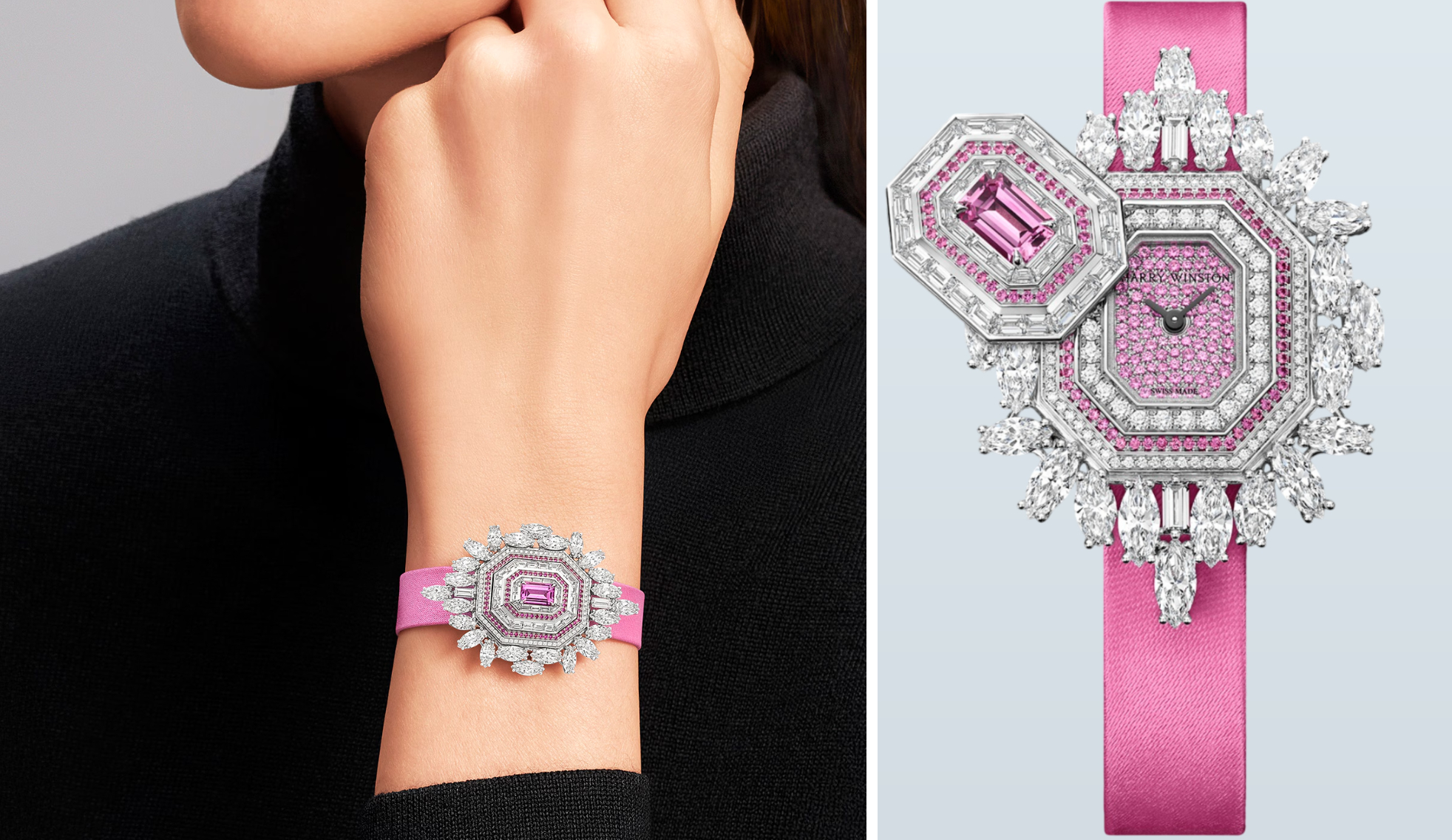 Trong sắc hồng ngọt ngào, chiếc đồng hồ Ultimate Emerald Signature HJTQHM32WW006 hiện lên như một tuyệt phẩm trang sức Haute Joaillerie có thể đeo trên cổ, tay hoặc cài áo. Sở hữu kích thước vỏ 32 × 46mm bằng vàng trắng 18K, tạo tác được nạm tổng cộng 194 viên sapphire hồng briliant, 137 viên kim cương briliant, cộng thêm 38 viên kim cương baguette, 24 viên marquise và 1 viên sapphire hồng giác cắt emerald tạo nên hiệu ứng ánh sáng vô cùng lộng lẫy. Mặt số và viền đồng hồ tiếp tục là nơi 98 viên sapphire hồng tỏa sáng đồng điệu cùng trong khi dây satin hồng đi kèm khóa 29 viên kim cương đều hoàn thiện tinh xảo. Bên trong, cỗ máy quartz Calibre HW1051 đảm nhận chức năng giờ và phút, đơn giản nhưng chính xác. Với độ dày chỉ khoảng 11.8 mm và thiết kế sang trọng có thể tùy biến nhiều cách đeo, mẫu đồng hồ này là minh chứng cho sự hòa quyện giữa nghệ thuật trang sức thượng hạng và sự tiện dụng hiện đại.