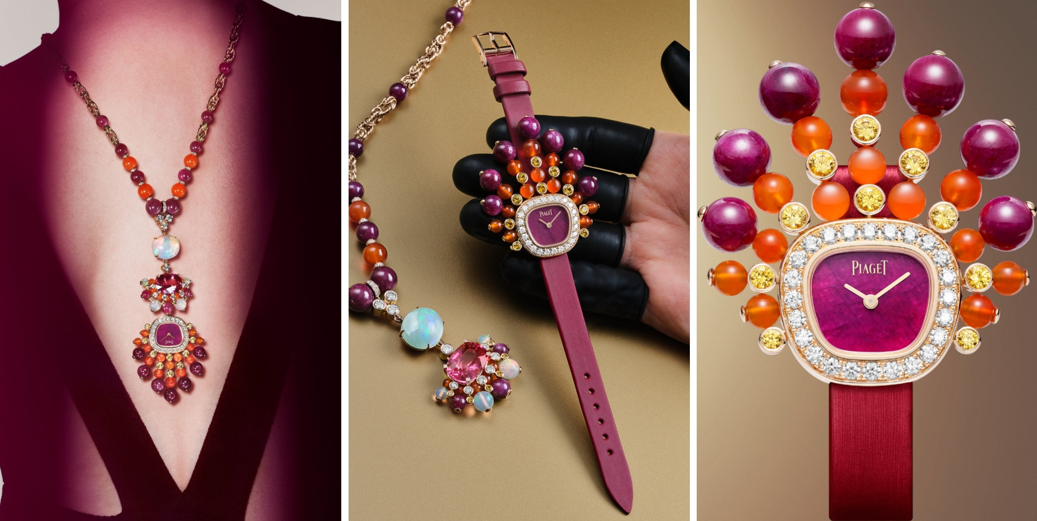 Thiết kế rực rỡ này là hiện thân mới nhất của di sản chế tác siêu mỏng và tinh thần sáng tạo không giới hạn của nhà Piaget, được chế tác hoàn toàn bằng vàng hồng 18K, từ vỏ, dây đeo cho đến khóa cài. Mặt số ấn tượng được hoàn thiện bằng đá rubyroot quý hiếm, nổi bật trên cấu trúc hình chữ nhật kích thước 29 x 20mm, độ dày chỉ 6.7 mm thể hiện sự tinh xảo và cân bằng hoàn hảo giữa nghệ thuật và kỹ thuật. Ẩn bên trong lớp vỏ xinh đẹp ấy là bộ máy quartz hiển thị giờ và phút, rất phù hợp cho những quý cô hiện đại yêu thích sự sang trọng linh hoạt. Đặc biệt hơn, tạo tác còn có thể chuyển đổi thành dạng dây chuyền cho những đêm dạ vũ lung linh.
