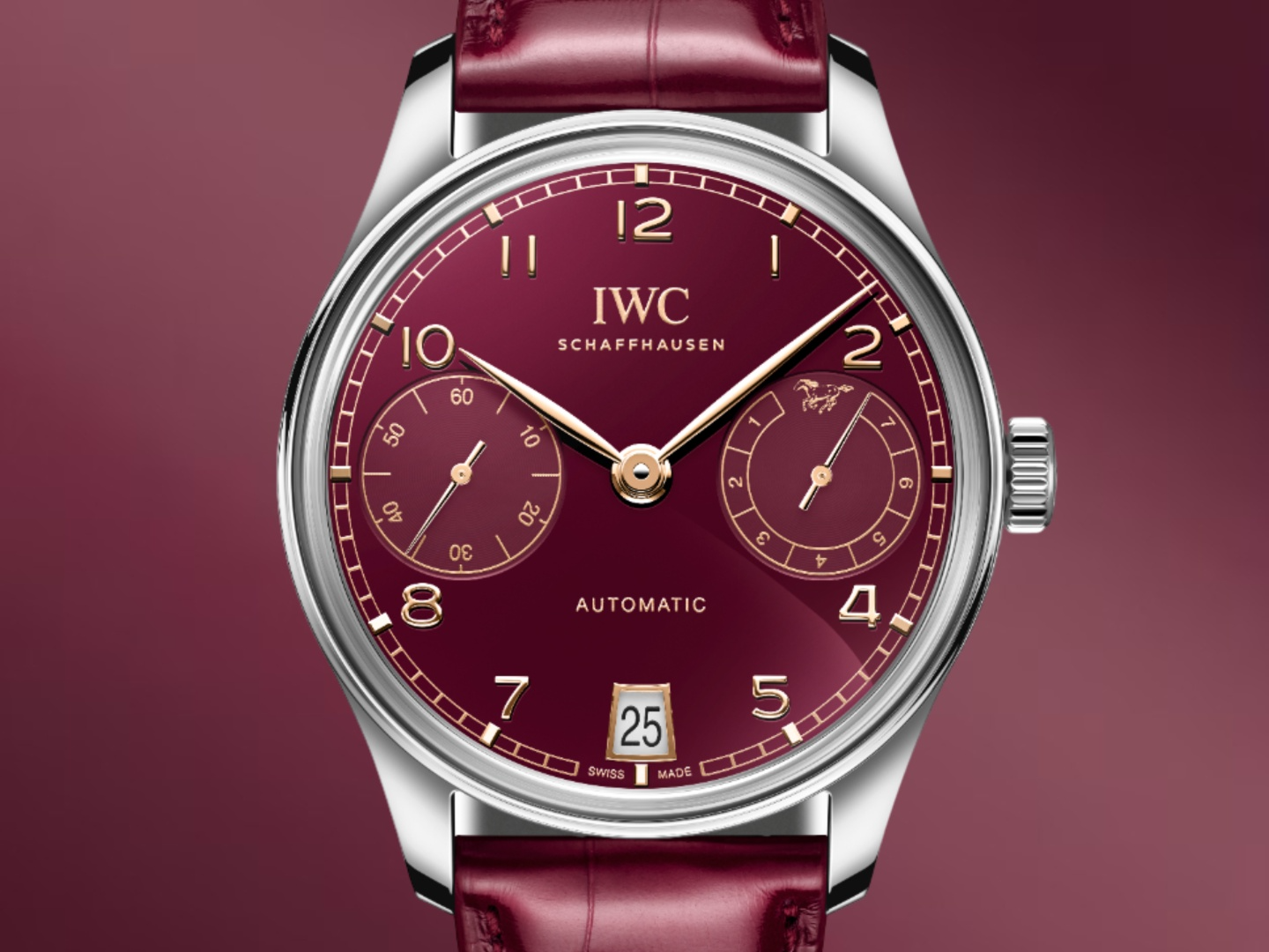 Portugieser Automatic 42 Year of the Horse (Ref. IW501709) được trang bị vỏ thép 42mm chế tác từ thép không gỉ. Thiết kế vỏ mảnh mai cùng mặt kính sapphire dạng hộp ở cả mặt trước lẫn sau mang lại vẻ tinh tế, thanh lịch đặc trưng. Đặc biệt, mặt số đỏ burgundy – lấy cảm hứng từ sắc đỏ may mắn ngày Tết – mang bố cục cân đối đặc trưng dòng Portugieser, với kim giây nhỏ ở vị trí 9 giờ bên cạnh thang đo năng lượng dự trữ ở 3 giờ, gợi nhớ đến Portugieser Automatic đầu tiên (Ref. 5000) ra mắt năm 2000. Nền đỏ trầm làm nổi bật kim, cọc số, chữ số La Mã mạ vàng cùng ô lịch ngày nhỏ nép mình trí 6 giờ.