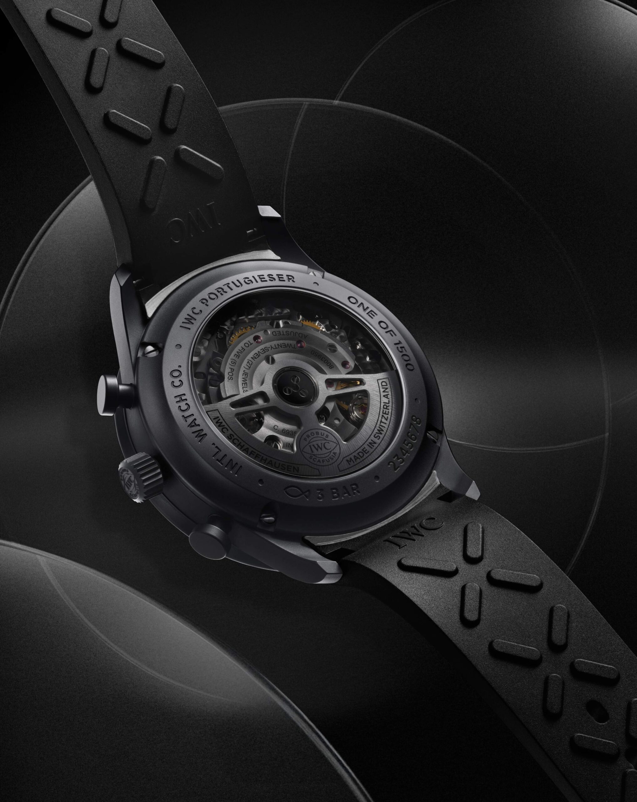 Kết hợp giữa trọng lượng nhẹ, độ cứng vượt trội cùng bề mặt tối đặc trưng, Ceratanium® đen được IWC Schaffhausen ứng dụng cho vỏ, núm chỉnh cùng các nút bấm của Portugieser Chronograph Ceratanium®. Tổng thể ngoại diện thuộc về “cỗ máy thời gian” giới hạn 1.500 chiếc càng thêm hoàn hảo khi sóng đôi mặt số và dây cao su trong sắc màu đồng điệu.