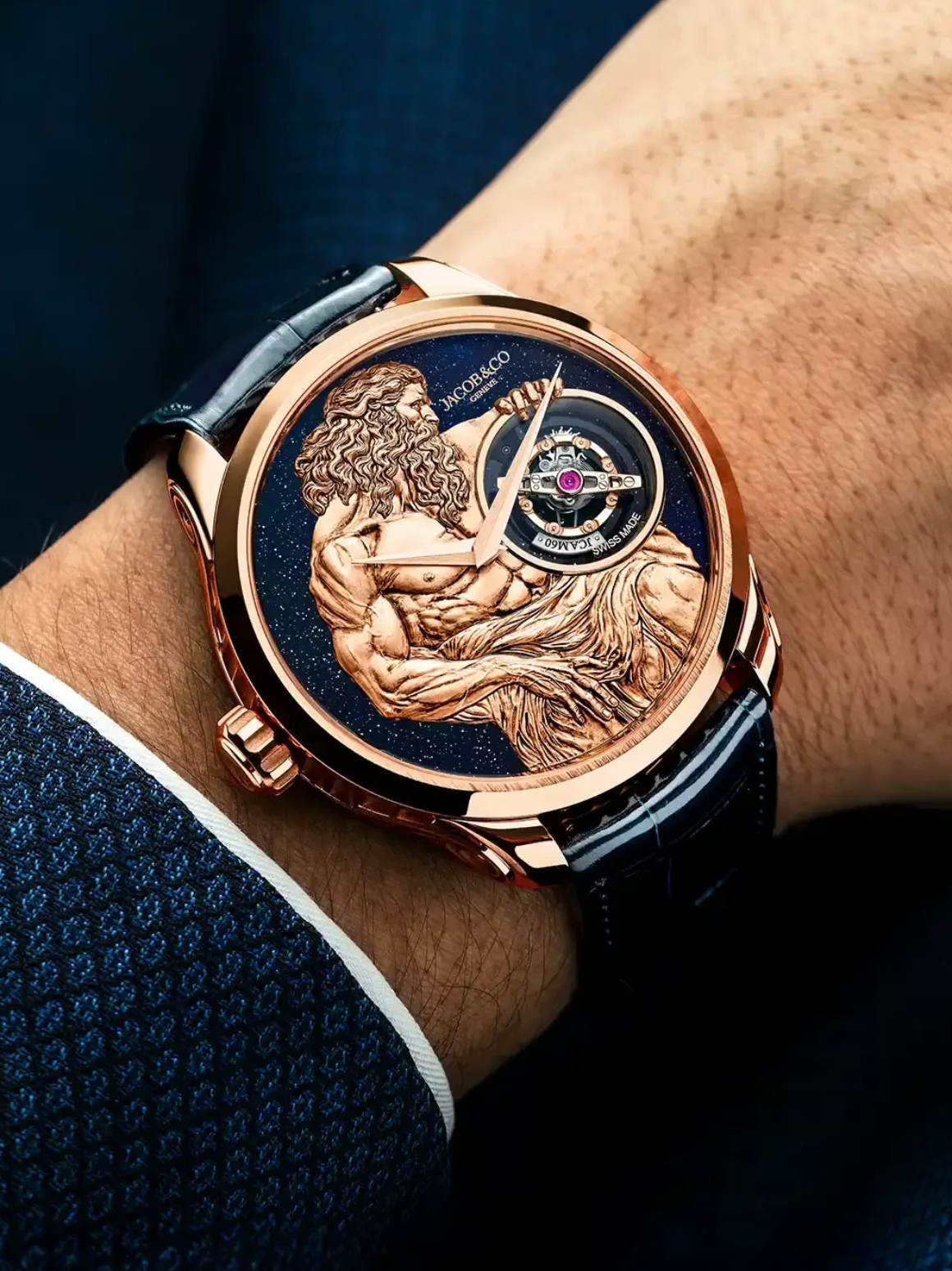Nằm vừa vặn trong vỏ 44,5mm kín nước ở độ sâu 30m, bộ máy đảm nhiệm sứ mệnh duy trì mọi hoạt động của God of Time. Được phát triển hoàn toàn từ con số không, Calibre JCAM60 được thiết kế để tourbillon hoàn thành vòng xoay trong 4 giây – tốc độ chưa từng có từ trước đến nay trong thế giới Haute Horlogerie đồng thời vẫn đảm bảo mức trữ cót lên đến 60 giờ.