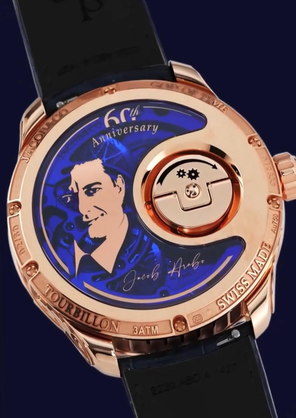 Ra đời nhân dịp Jacob Arabo đón tuổi 60, “cỗ máy thời gian” giới hạn 60 chiếc hiển thị chân dung kèm chữ ký của ông trên kính sapphire