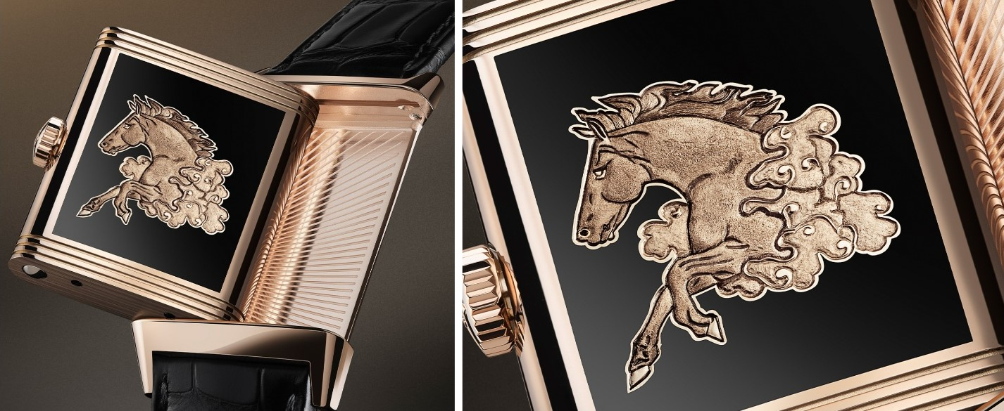 a đời năm 1931 với thiết kế vỏ xoay mang tính đột phá, Reverso mang lại giải pháp hiệu quả dành cho các vận động viên polo, những người cần bảo vệ mặt số cùng kính đồng hồ trong quá trình thi đấu trên sân. Nhanh chóng vượt ra khỏi phạm vi thể thao, thiết kế sáng tạo chinh phục giới mộ điệu ở mọi tầng lớp nhờ thẩm mỹ Art Deco độc đáo cùng khả năng cá nhân hóa mặt vỏ sau.Reverso vẫn gắn bó bền chặt với môn thể thao trên lưng ngựa. Tinh thần đó gói ghém trọn vẹn trong Reverso Tribute Enamel ‘Horse’, mẫu thứ tư thuộc series sản phẩm tôn vinh 12 con giáp, tiếp nối các năm Dần, Thìn và Tỵ. Biểu trưng cho sức mạnh, vẻ đẹp, tự do, sinh lực, tốc độ cùng sự bền bỉ, ngựa giữ vị trí quan trọng trong nghệ thuật và văn hóa Trung Hoa.