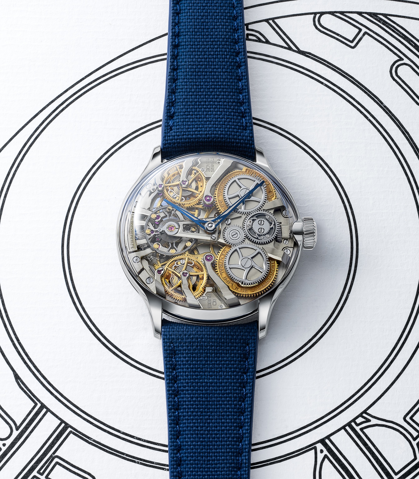 Hình học của hệ thống remontoir đã được thiết kế lại hoàn toàn, đại diện cho một bước tiến kết nối hàng thế kỷ nghiên cứu đồng hồ học với kỹ thuật chế tác hiện đại. Nhẹ lật sang mặt sau, một hình khắc mang tính kiến trúc hiện ra, lấy cảm hứng từ chính cấu trúc bộ máy. Bên dưới, kim giây nhỏ di chuyển hài hòa theo chu kỳ của bộ hồi lực remontoir. Chi tiết kín đáo này thể hiện rõ phong cách Lederer: sự tinh vi mang tính kỹ thuật được biểu đạt bằng sự tiết chế, dành cho những ai quan sát thật kỹ.