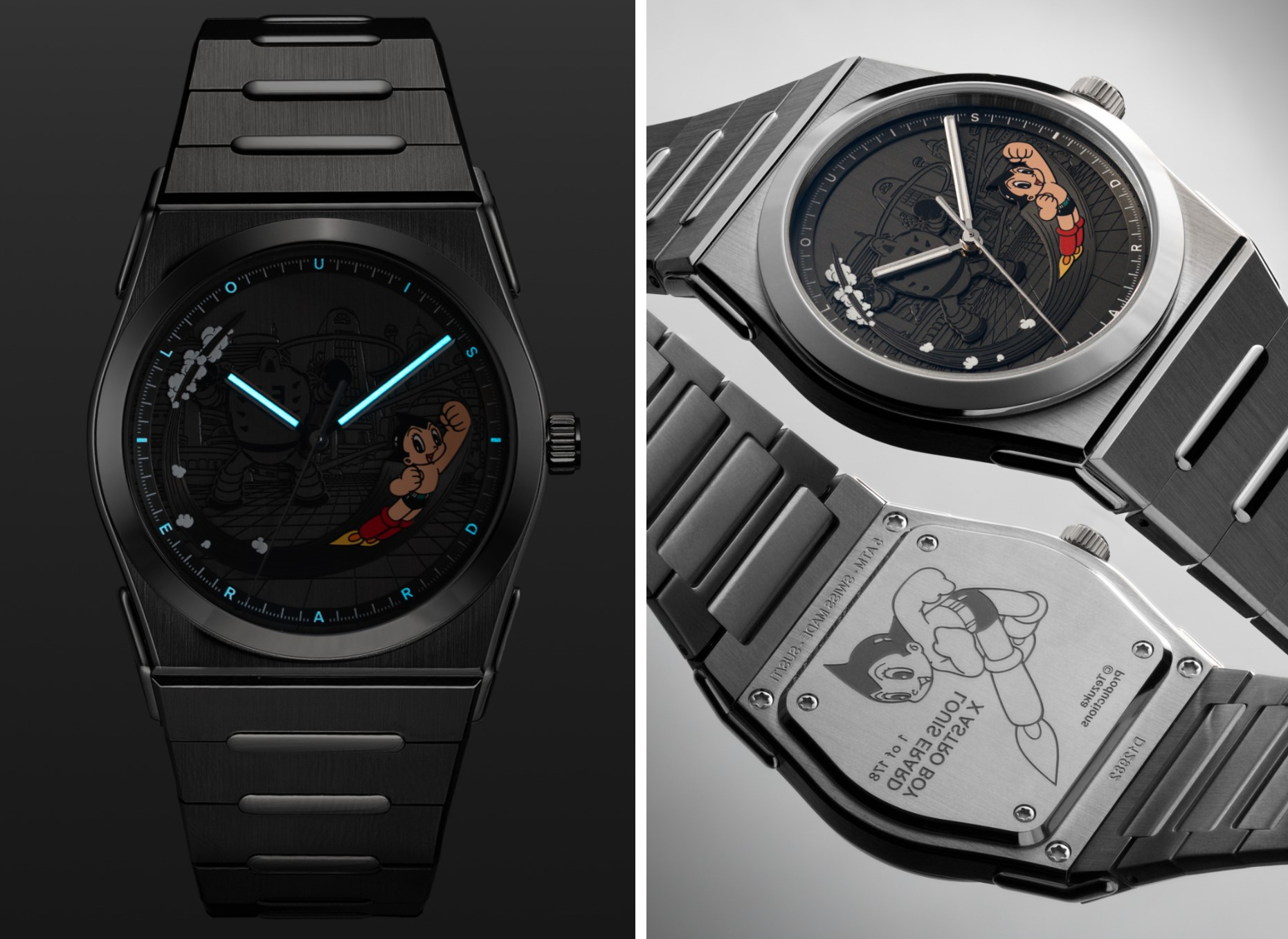 a đời năm 1952 bởi “cha đẻ manga” Osamu Tezuka, Astro Boy đã trở thành huyền thoại toàn cầu. Cậu bé robot sinh ra từ nỗi đau mất mát, được tạo nên để thay thế một đứa trẻ đã qua đời, nhưng rồi lại cống hiến cuộc đời cho công lý, lòng nhân ái và niềm tin vào con người. Màn hợp tác đầu tiên đầy ý nghĩa – Louis Erard x Astro Boy – đánh dấu bước ngoặt khi dòng 2340 tiến vào lãnh địa văn hóa đại chúng, thông qua biểu tượng đã gắn liền với tuổi thơ của nhà sáng lập thương hiệu Manuel Emch cùng hàng triệu người hâm mộ trên thế giới. Trong phiên bản đặc biệt này, Louis Erard hợp tác trực tiếp với Tezuka Productions để sử dụng hình ảnh gốc từ bộ truyện Astro Boy cổ điển.