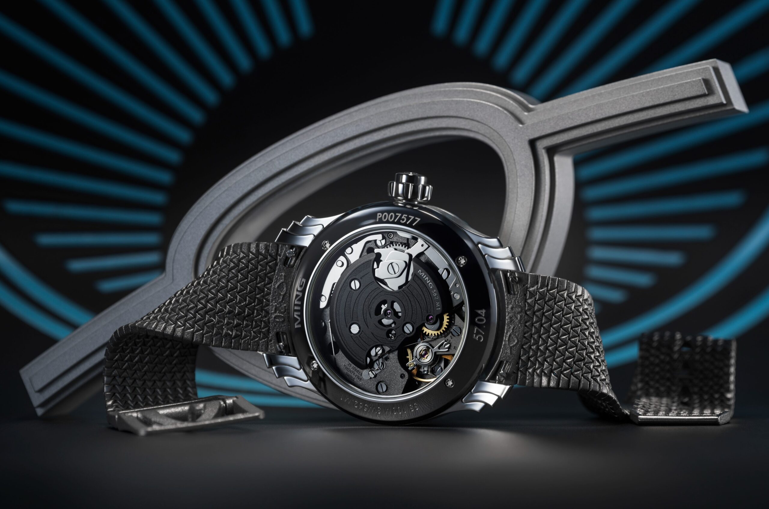 hiếc đồng hồ sở hữu cấu trúc tông màu hài hòa: đơn sắc nhưng vẫn giàu chiều sâu, mang tính đồ họa rõ nét đồng thời điểm xuyết những sắc màu tinh tế ẩn hiện bên dưới. Trong đó, mặt số là một nghiên cứu về kết cấu và ánh sáng – bóng tối, với các đường điêu khắc cong, chi tiết âm bản cùng độ sâu đáng kể. Ngay cả mặt số phụ cũng được thiết kế lại nhằm tăng cường cảm giác chiều sâu này. Trung thành cùng bản sắc MING, mọi chi tiết đều được phủ vật liệu dạ quang, sử dụng cả MING Polar White lẫn Super-LumiNova X1.