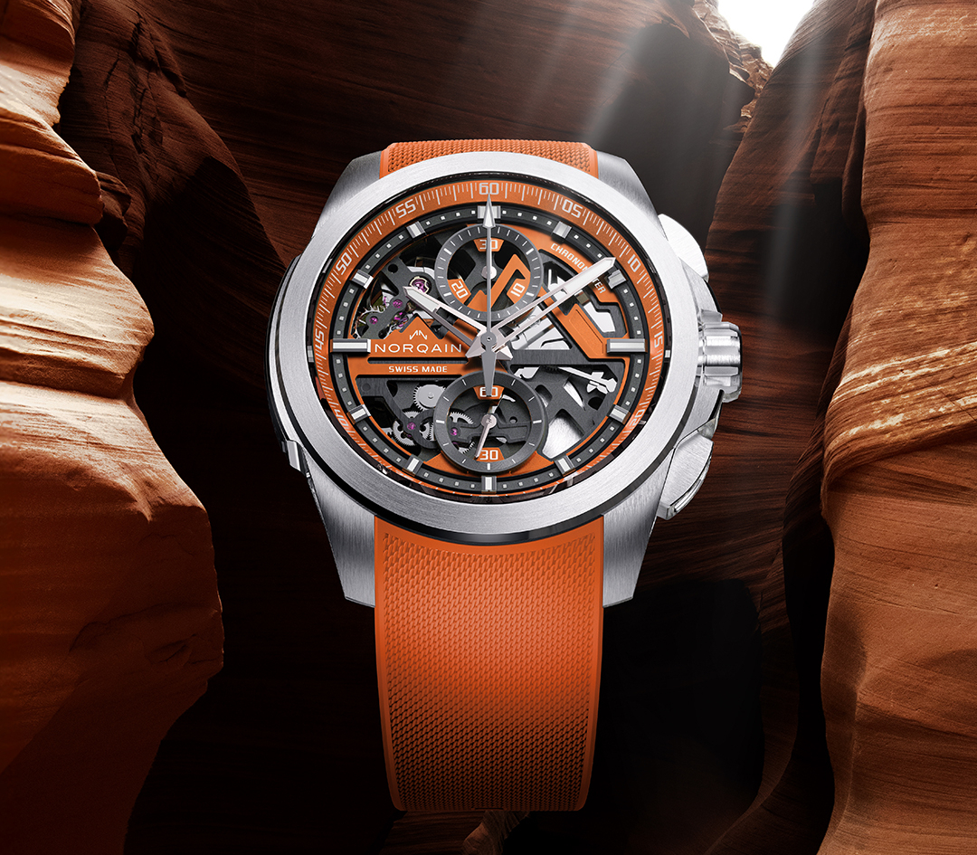 hà sáng lập kiêm Giám đốc Điều hành Ben Küffer chia sẻ: kể từ khi ra mắt Independence Skeleton Chrono tại New York năm 2024, Norqain đã thu hút đông đảo giới sưu tầm và người yêu đồng hồ. Họ bị hấp dẫn bởi thiết kế lộ cơ táo bạo với họa tiết đỉnh núi đặc trưng cùng cơ chế flyback khởi động lại chỉ với một nút bấm. “Phiên bản cam rực rỡ mới mang tinh thần phiêu lưu đặc trưng NORQAIN, mang lại nguồn năng lượng tươi mới cho cả bộ sưu tập”, anh chia sẻ.