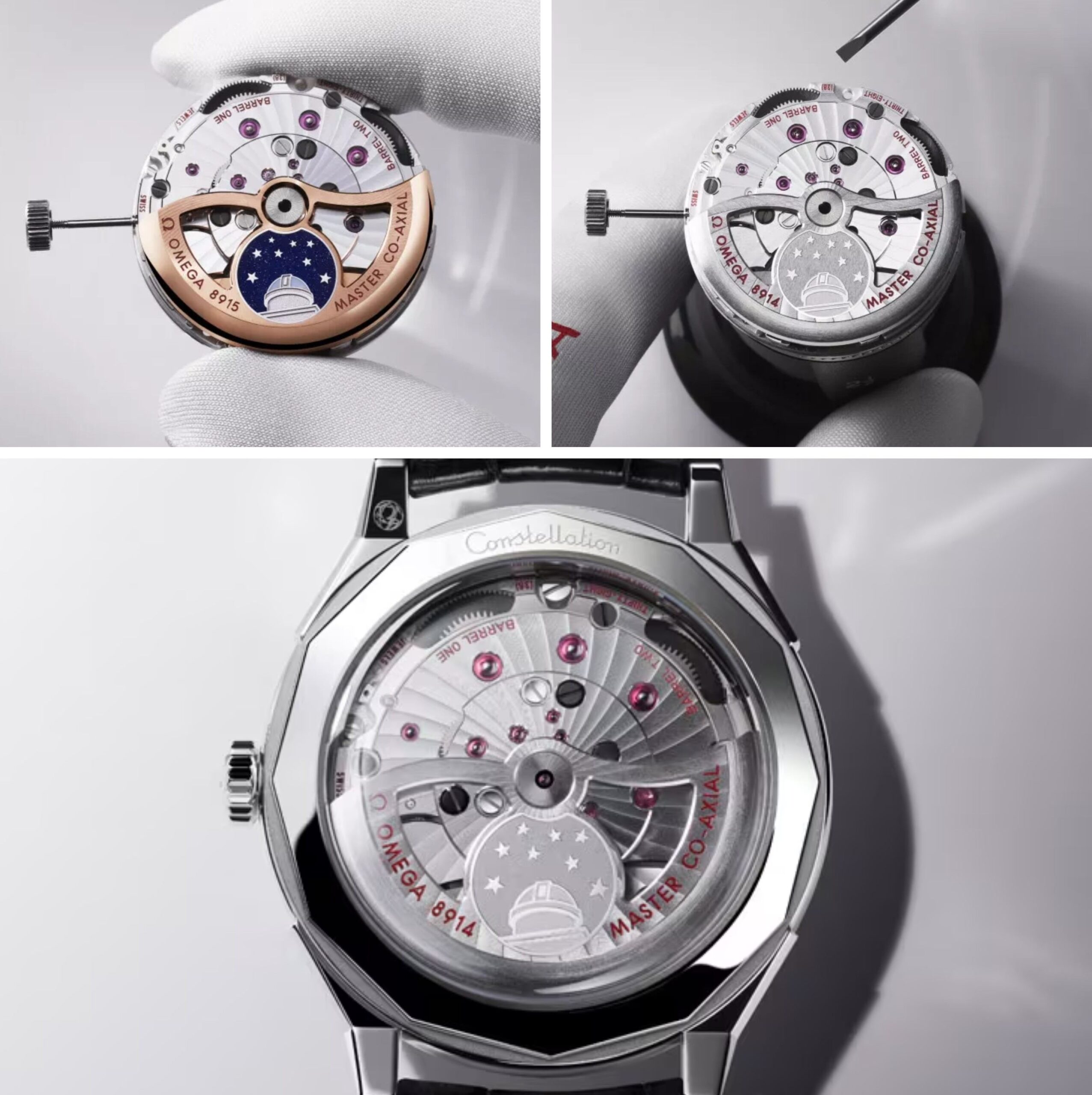 Calibre 8915 vận hành các phiên bản kim loại quý và Calibre 8914 duy trì hoạt động cho các phiên bản O-MEGASTEEL