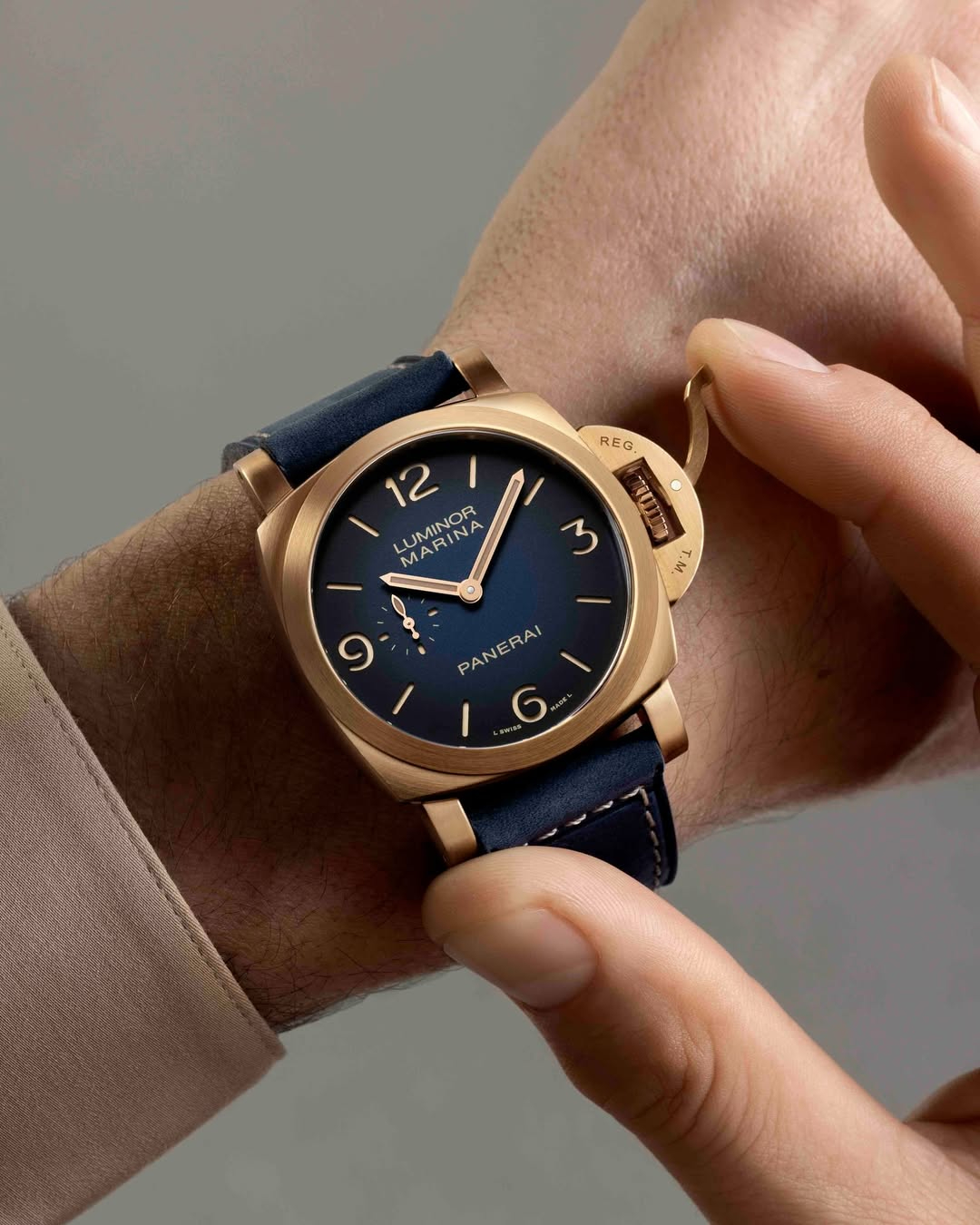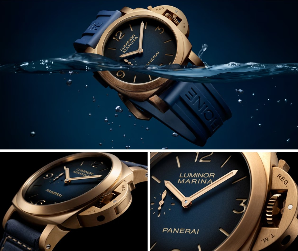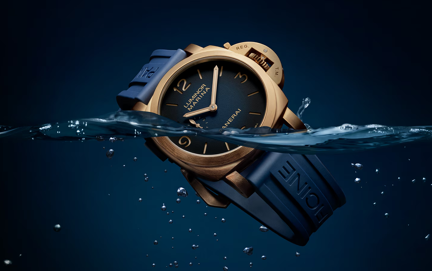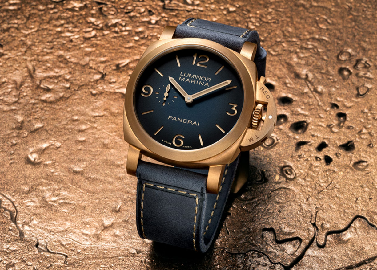 Lần đầu tiên, chất liệu đồng – Bronzo – xuất hiện trong dòng Luminor Marina, với sự gia nhập của tân thành viên Luminor Marina Bronzo PAM01678. Hình thành lớp gỉ tự nhiên đầy tinh tế theo thời gian, vỏ 44mm viền quanh mặt số sandwich xanh dương và bảo vệ bộ máy nội bộ Panerai, Calibre P.980, an toàn ở độ sâu 500m.