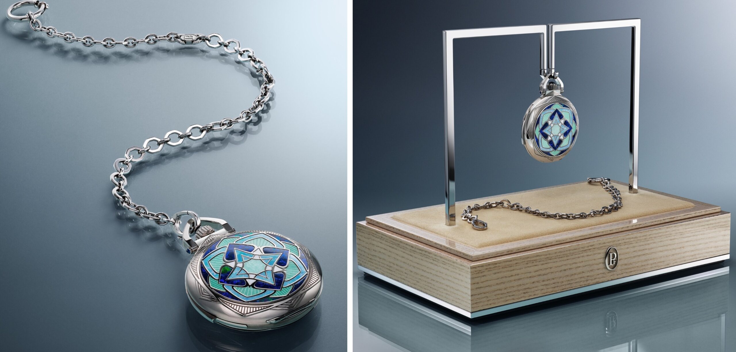 La Ravenale được hoàn thiện bởi một tập hợp những nghệ nhân bậc thầy – Mains d’Or – những người đảm nhiệm từng chi tiết của tác phẩm, từ chạm khắc thủ công, chế tác đá đến chế tạo dây xích vàng trắng 18K. Dây xích, do Laurent Jolliet – nghệ nhân làm dây thủ công cuối cùng của Thụy Sỹ – chế tác trong gần một trăm giờ, kết hợp hình học tinh tế của hệ thống mắt xích với vẻ thuần khiết hình elip biểu tượng PF.