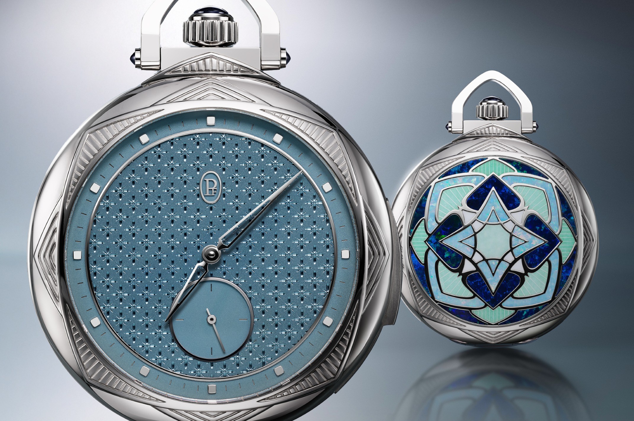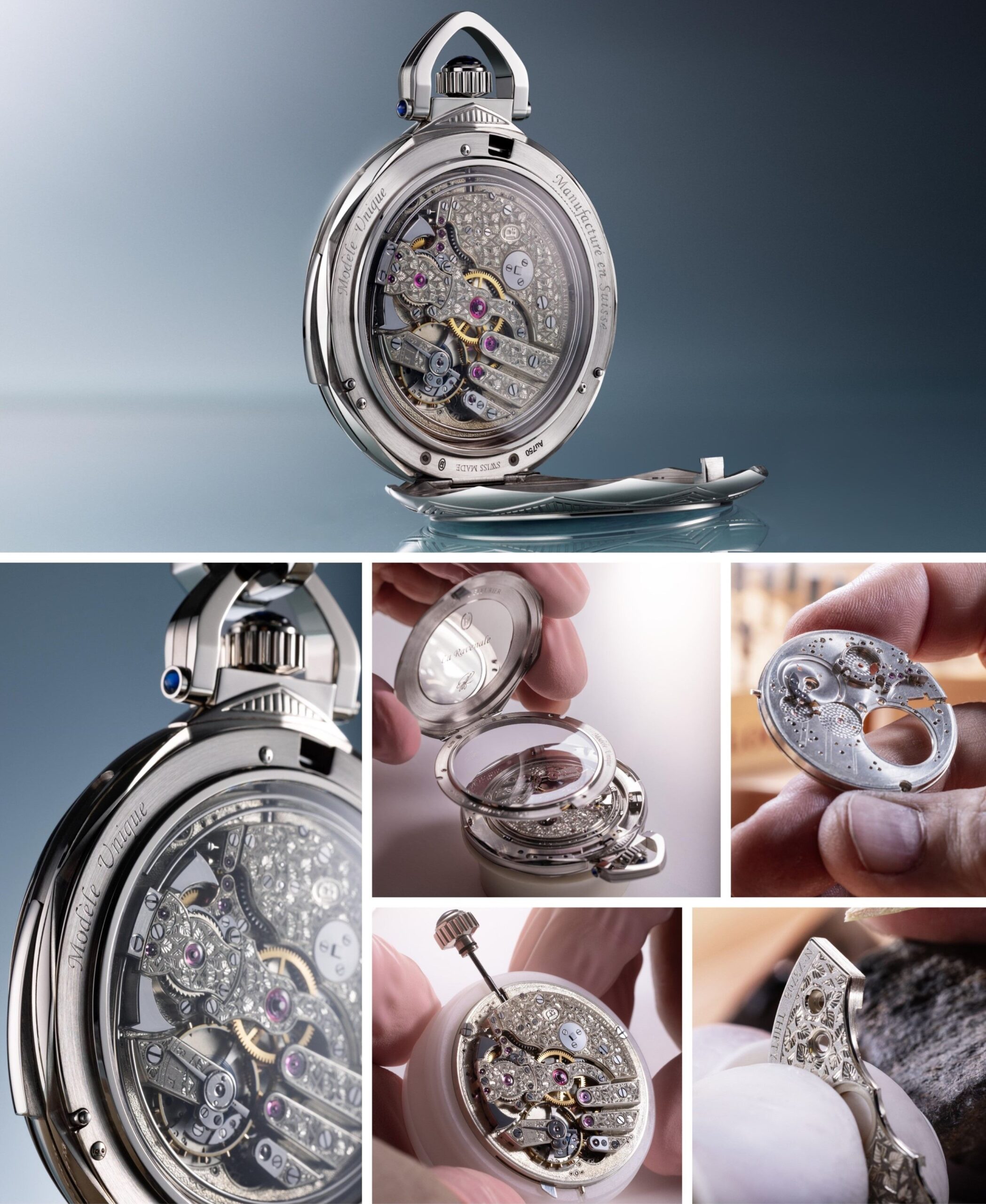 a Ravenale được định hình như cuộc đối thoại giữa hình học tự nhiên cùng chuyên môn horology truyền thống. Tên gọi kiệt tác xuất phát từ cây Ravenala madagascariensis – Traveller’s Palm của Madagascar – loài cây nổi tiếng với cấu trúc hình quạt cân xứng theo tỷ lệ vàng và khả năng tích nước trong thân để nuôi dưỡng người lữ hành. Từ nguồn cảm hứng đó, các họa tiết chạm khắc trên vỏ, mặt số, hệ thống cầu nối. cùng nghệ thuật cẩn opal – jade ở mặt sau, đều được xây dựng trên tỷ lệ đối xứng đặc trưng. Chiếc đồng hồ bỏ túi định dạng Lépine mang đến bố cục thoáng đãng, cho phép các kỹ nghệ thủ công như chạm khắc, nạm và trang trí đá quý được phô diễn trọn vẹn.