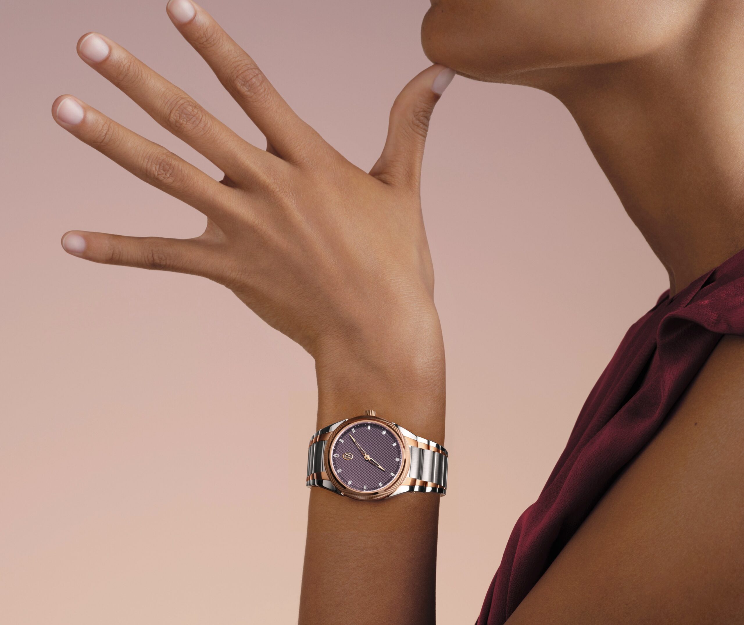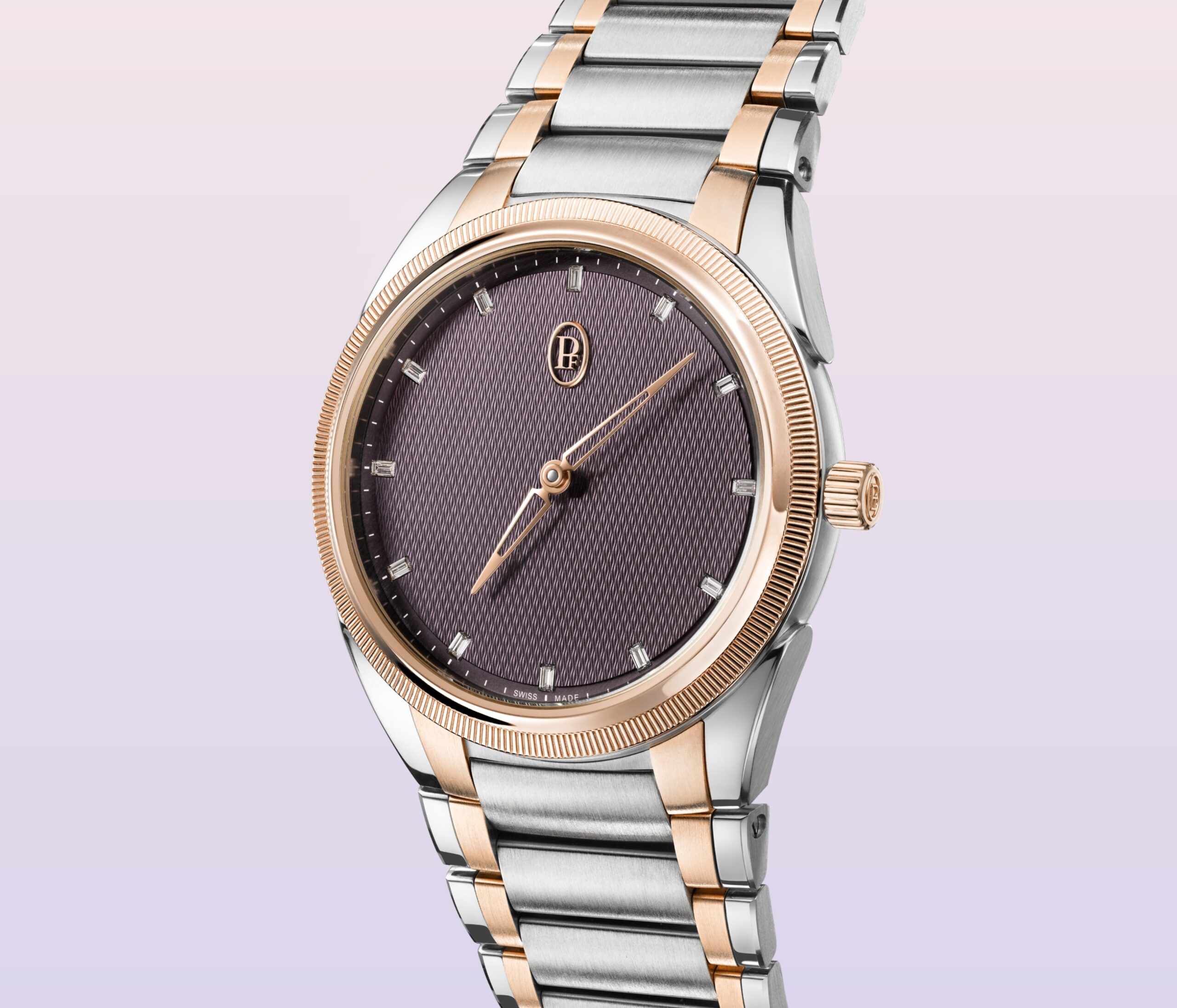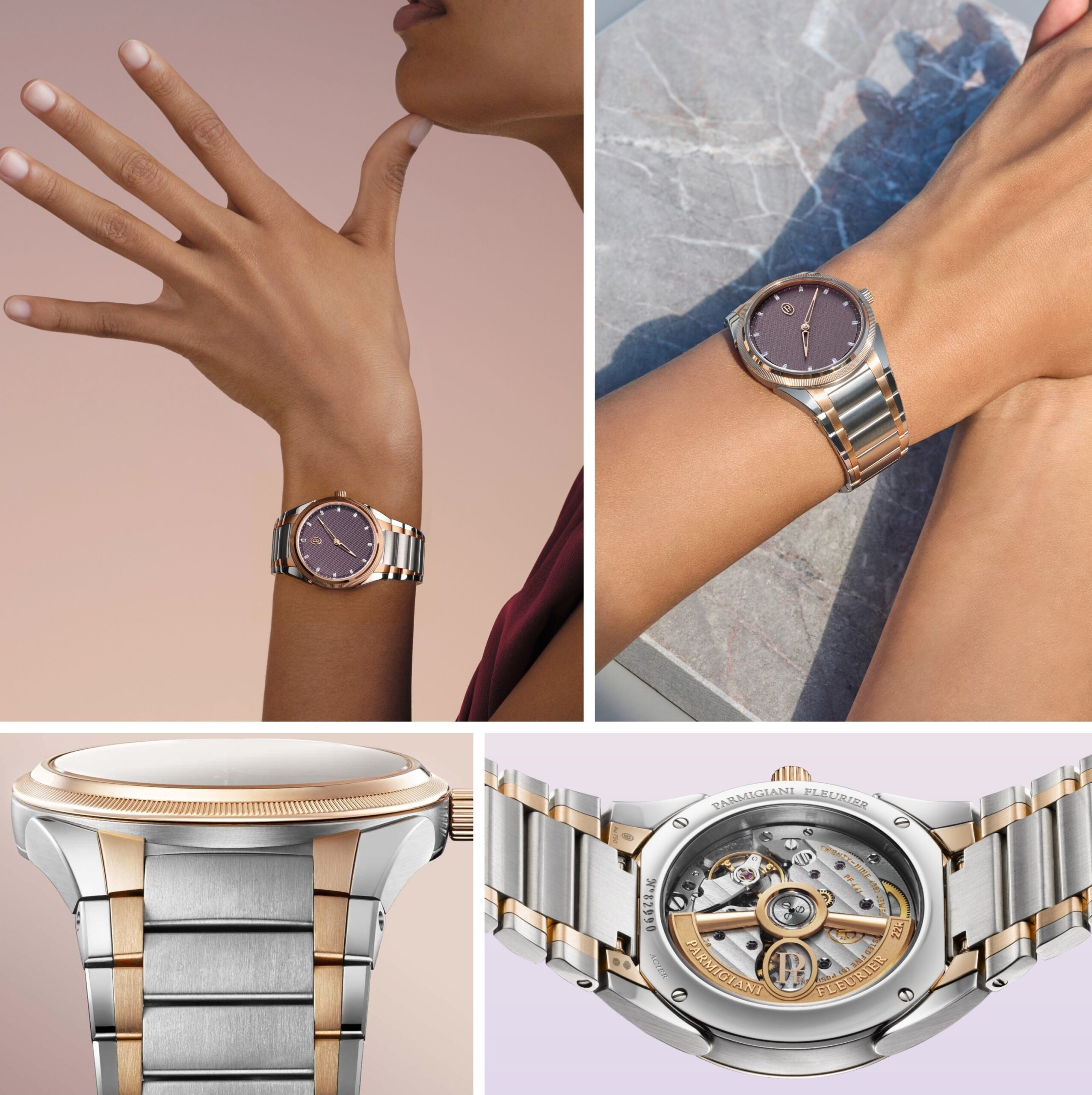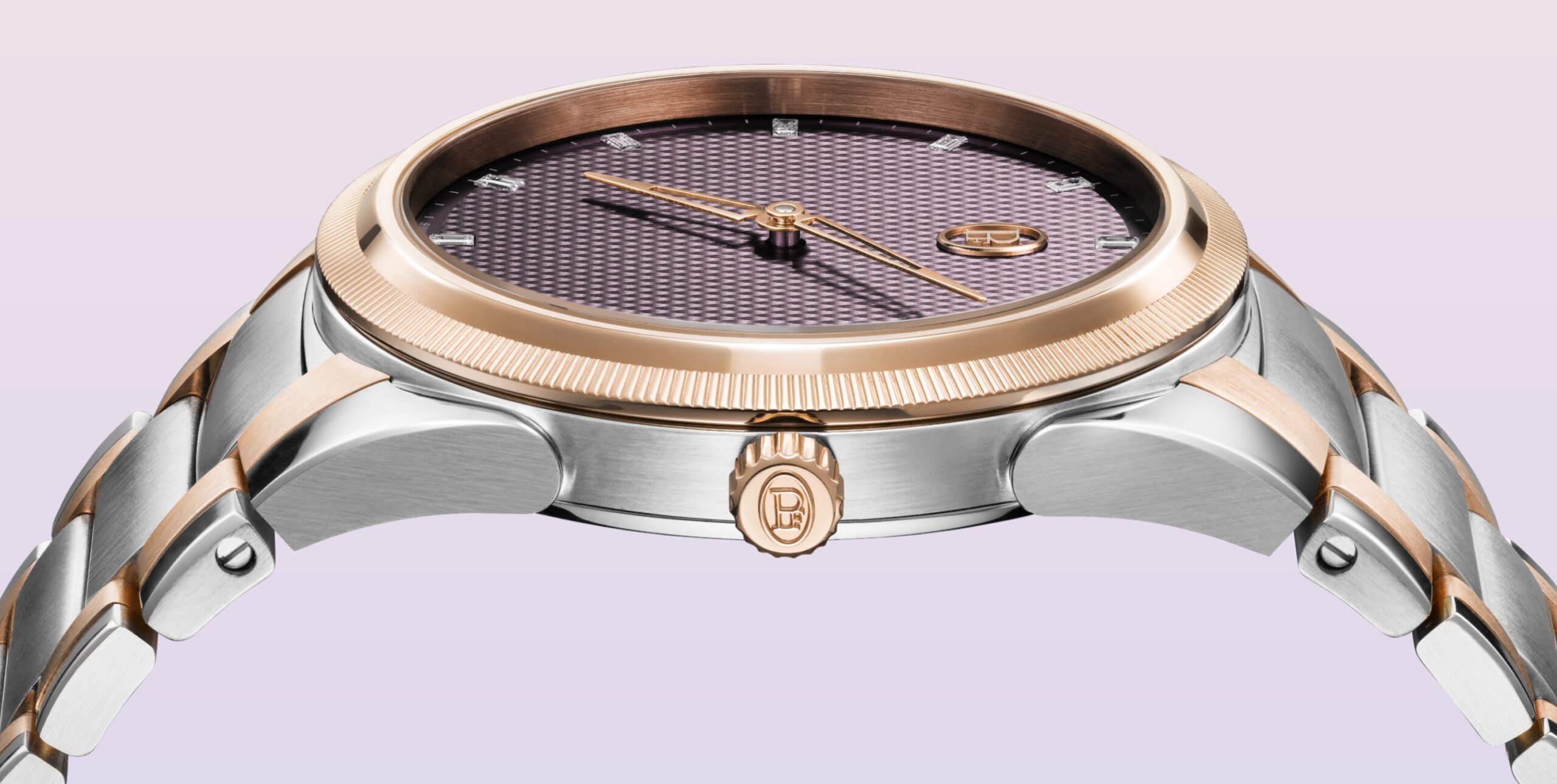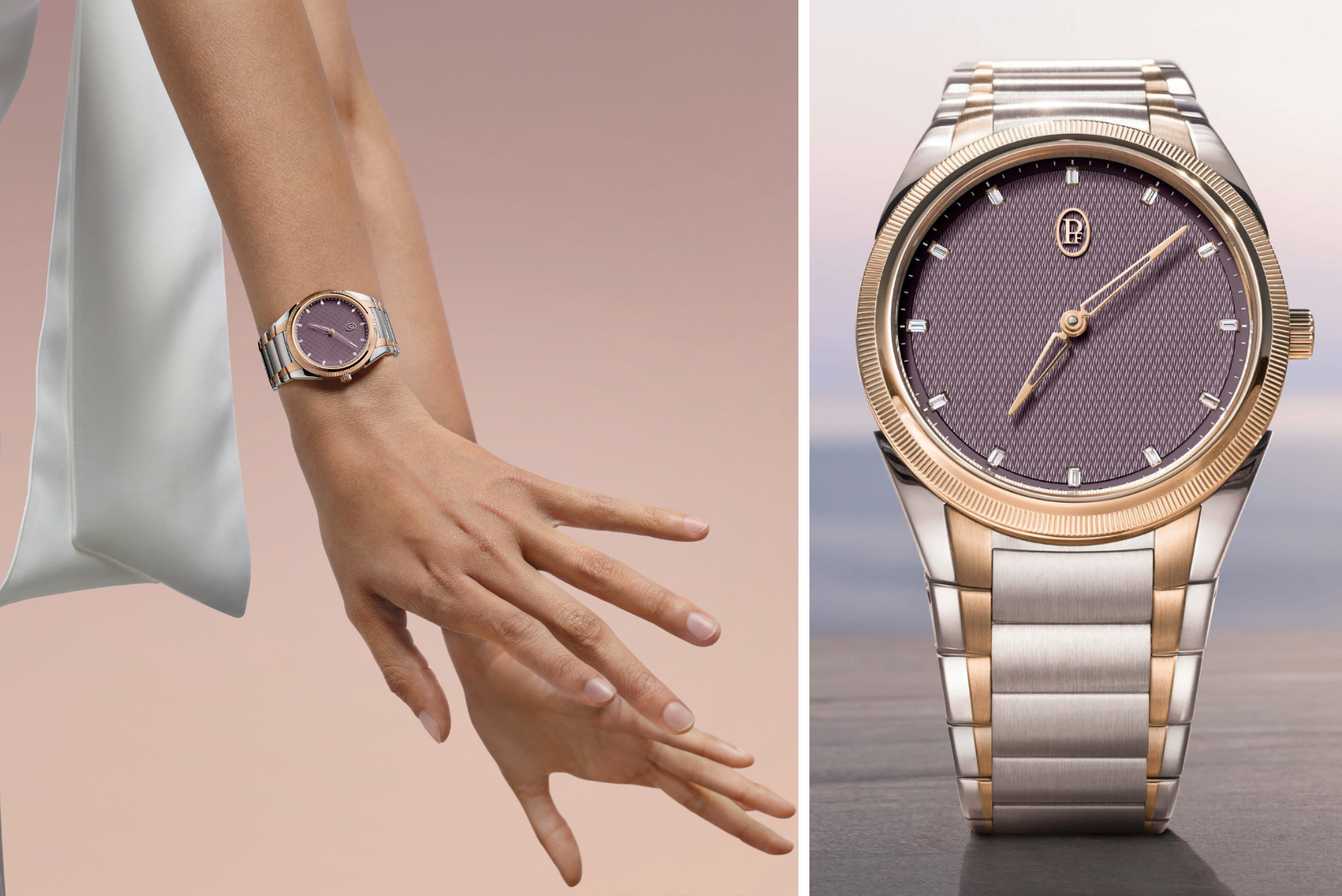 Sự kết hợp độc đáo giữa thép và vàng hồng kiến tạo vẻ đẹp thanh lịch cho chiếc đồng hồ mới