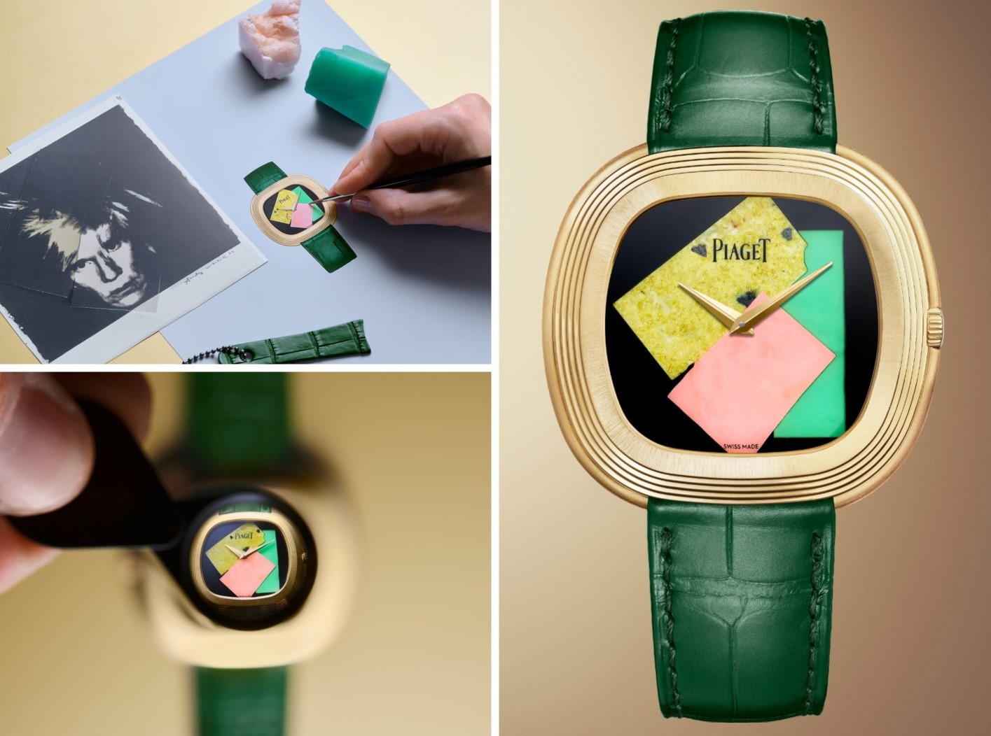 ự kết hợp giữa kỹ nghệ chế tác đồng hồ Thụy Sỹ chuẩn mực cùng tinh thần sáng tạo phóng khoáng của Pop Art đã tạo nên khoảnh khắc lịch sử trong nghệ thuật chế tác. Không dừng lại ở quan hệ hợp tác đơn thuần, cuộc gặp gỡ giữa Piaget cùng The Andy Warhol Foundation for the Visual Arts minh chứng hòa quyện của hai vũ trụ tưởng chừng đối lập: một bên mải miết theo đuổi tính chính xác, tinh tế, bền bỉ trong khi một bên say sưa đắm mình trong tự do, táo bạo, thách thức mọi khuôn mẫu sáng tạo. Ra đời từ cơ sở này, Andy Warhol Watch ‘Collage’ Limited Edition mở ra cuộc đối thoại giữa kỹ thuật và cảm xúc, giữa truyền thống và cách tân.Ra mắt sau màn hợp tác được công bố vào tháng 11 năm 2024, phiên bản đặc biệt giới hạn 50 chiếc, lấy cảm hứng từ bức Self-Portrait “Collage” mà Andy Warhol thực hiện năm 1986. Tỏa sáng trong phong cách thanh lịch, tân phẩm Piaget tưởng nhớ người nghệ sĩ đã định nghĩa lại khái niệm danh tiếng và thời gian – hai yếu tố trung tâm trong cả cuộc đời lẫn sự nghiệp của ông. Trên nền đá onyx đen gợi nhớ đến chiếc Piaget Warhol năm 1973, mặt số khảm đá serpentine Namibia, opal hồng, chrysoprase, tạo nên bố cục màu sắc sống động, vừa trừu tượng vừa biểu cảm, như chính thế giới nội tâm đầy năng lượng của nghệ sĩ.