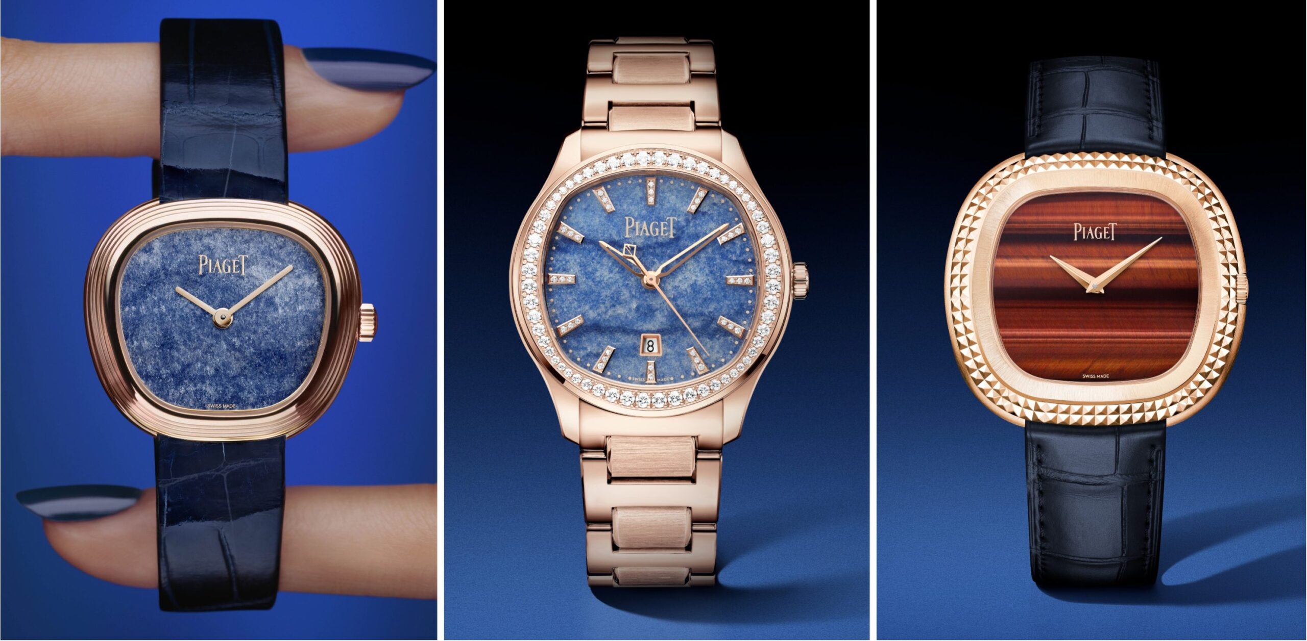 Dấu ấn ấy hiện lên trước hết qua ba bảng màu nổi bật. Gắn chặt với lịch sử Piaget, các sắc thái màu xanh xuất hiện trên Sixtie song hành cùng dây da, Piaget Polo 36mm bằng vàng hồng và Andy Warhol mặt số blue quartz. Ở một hướng khác, Piaget tiếp tục phát triển mẫu Andy Warhol như tạo vật được giới sưu tầm săn đón, với lựa chọn mặt số bull’s eye màu nâu đỏ ấm, ánh chatoyancy đặc trưng, kết hợp cùng bộ vỏ Clou de Paris từng ra mắt bằng vàng trắng vào năm 2024.