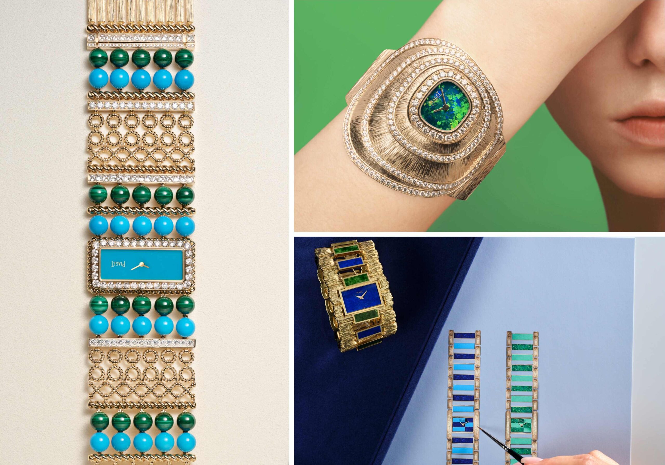 ừ năm 1963, Piaget đã sớm chọn cho mình một lối đi khác biệt khi đưa các loại đá trang trí như lapis lazuli, turquoise, malachite hay tiger’s eye lên mặt số đồng hồ. Trong bối cảnh nhiều nhà chế tác đang hướng đến thép để mở rộng thị trường, Piaget lại nâng chiếc đồng hồ thành món trang sức giàu tính nghệ thuật. Chính quyết định ấy đã mở ra một chương quan trọng trong lịch sử thẩm mỹ thương hiệu, nơi màu sắc không chỉ hiện diện như yếu tố trang trí mà trở thành trung tâm của biểu đạt sáng tạo. Cách tiếp cận này được hỗ trợ bởi những nền tảng kỹ thuật mang tính quyết định. Sau khi lựa chọn chỉ làm việc với kim loại quý và vật liệu quý từ năm 1957, Piaget đồng thời sở hữu bộ máy siêu mỏng 9P, một phát minh giúp giải phóng thiết kế và mở rộng không gian cho mặt số. Nhờ vậy, đá trang trí có thể được cắt, đánh bóng đồng thời đưa vào cấu trúc đồng hồ mà vẫn duy trì độ mỏng vốn đã trở thành biểu tượng. Từ đây, mặt số thực sự trở thành vùng đất mới của sáng tạo.Tuy nhiên, trọng tâm của câu chuyện năm 2026 nằm ở cách Piaget quay trở lại với kho tàng ấy để làm mới tinh thần hiện đại vượt thời gian của mình. Maison đang đào sâu hơn vào di sản, kết nối quá khứ và hiện tại để tái khơi dậy “Art of Colour” thông qua những biến thể đá trang trí mới, xuất hiện trên các mẫu đồng hồ mới theo phong cách táo bạo rất đặc trưng.