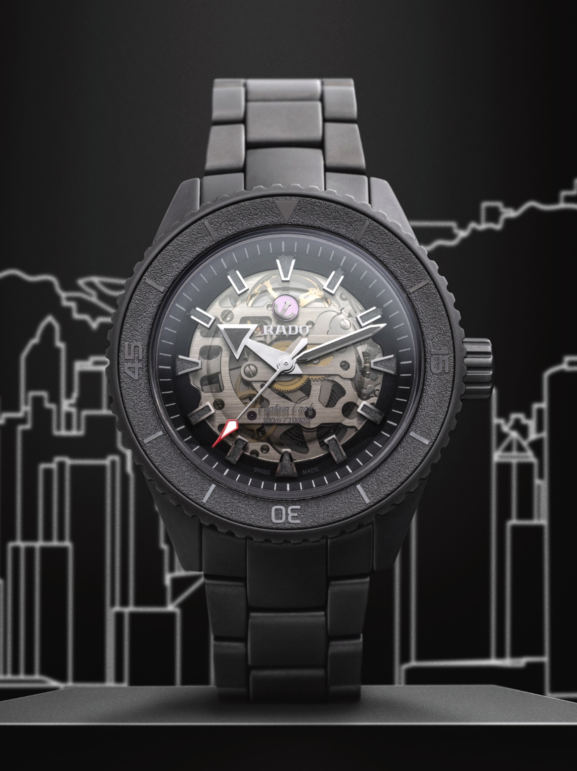 uôn vận động và đổi mới, nhưng Hong Kong vẫn chưa bao giờ lãng quên quá khứ. Sự giao thoa hằng ngày giữa đời sống hiện đại cùng di sản lâu đời chính là bản sắc cốt lõi của đô thị nổi tiếng với nhiều tòa nhà cao tầng nhất thế giới, như Bank of China Tower hay Two International Finance Centre. Đồng hồ Rado, cụ thể là Captain Cook Hong Kong Limited Edition – cũng phản chiếu tinh thần ấy, khi kết hợp hài hòa giữa truyền thống và đổi mới. Đó là truyền thống chế tác đồng hồ Thụy Sỹ được mài giũa qua nhiều thế kỷ, nay được tái hiện cho thế kỷ 21 bằng vật liệu hiện đại và phong cách đương thời.Giống như một tòa tháp vươn cao giữa đô thị, “cỗ máy thời gian” mang sắc đen mờ là lời khẳng định rõ ràng về sự tự tin, khí chất cùng thành công. Ngôn ngữ đơn sắc đánh dấu một hướng đi mới cho dòng Captain Cook High-Tech Ceramic Skeleton – vốn nổi bật với tinh thần thể thao mạnh mẽ và cá tính bền bỉ.